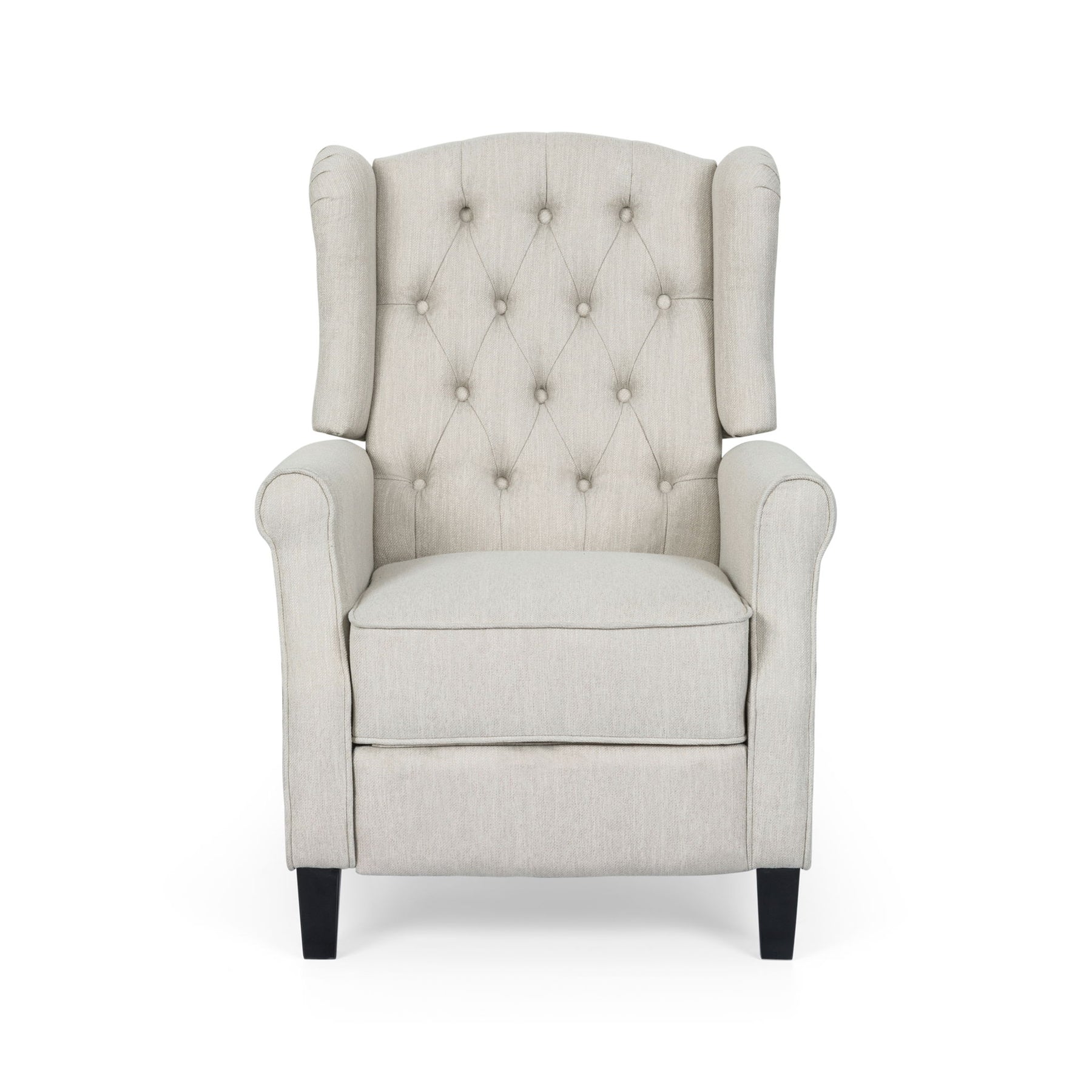 Contemporary Tufted Fabric Push Back Recliner - Beige