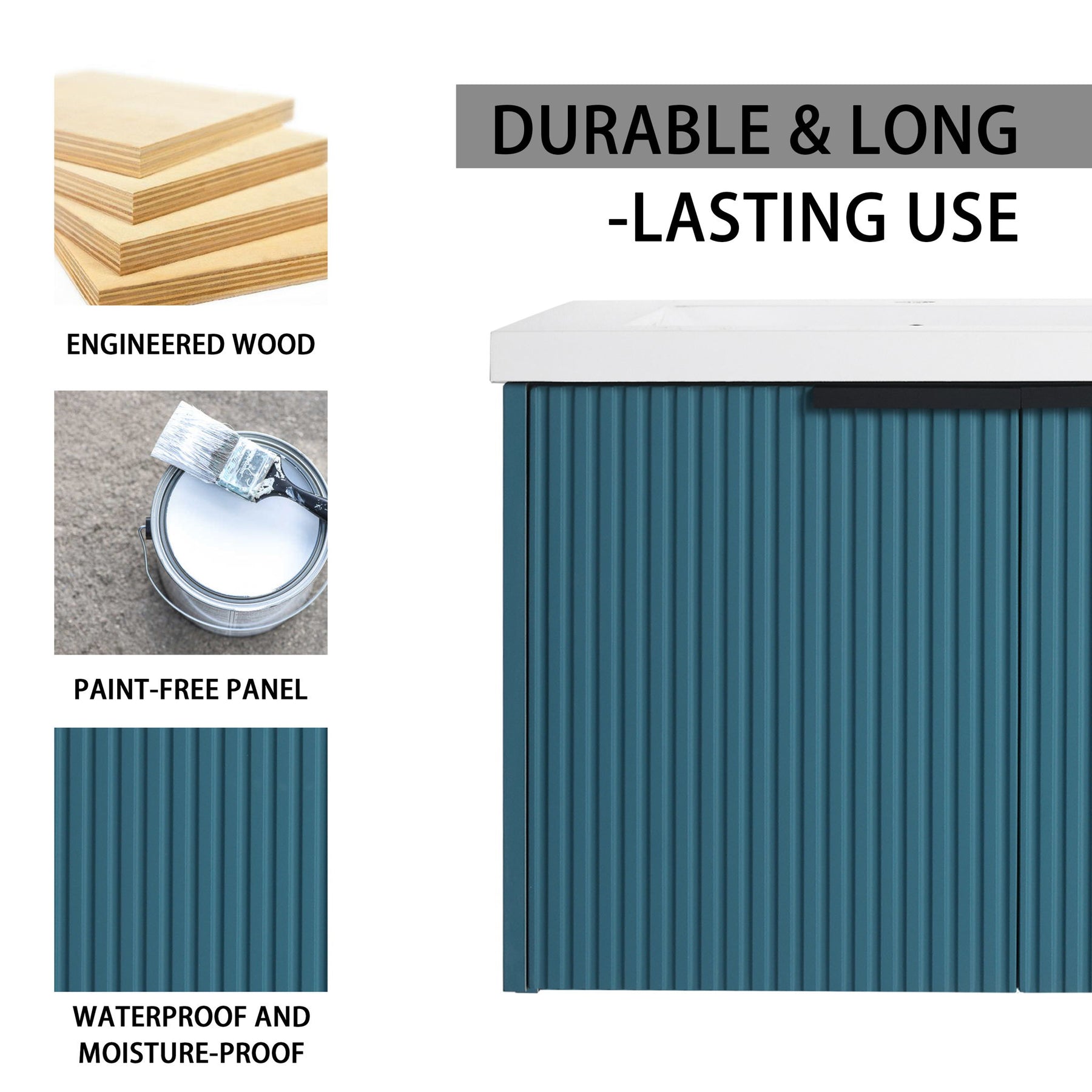 Contemporary Wall Mounted Bathroom Vanity With Resin Sink & Soft Close Doorі - Lake Blue