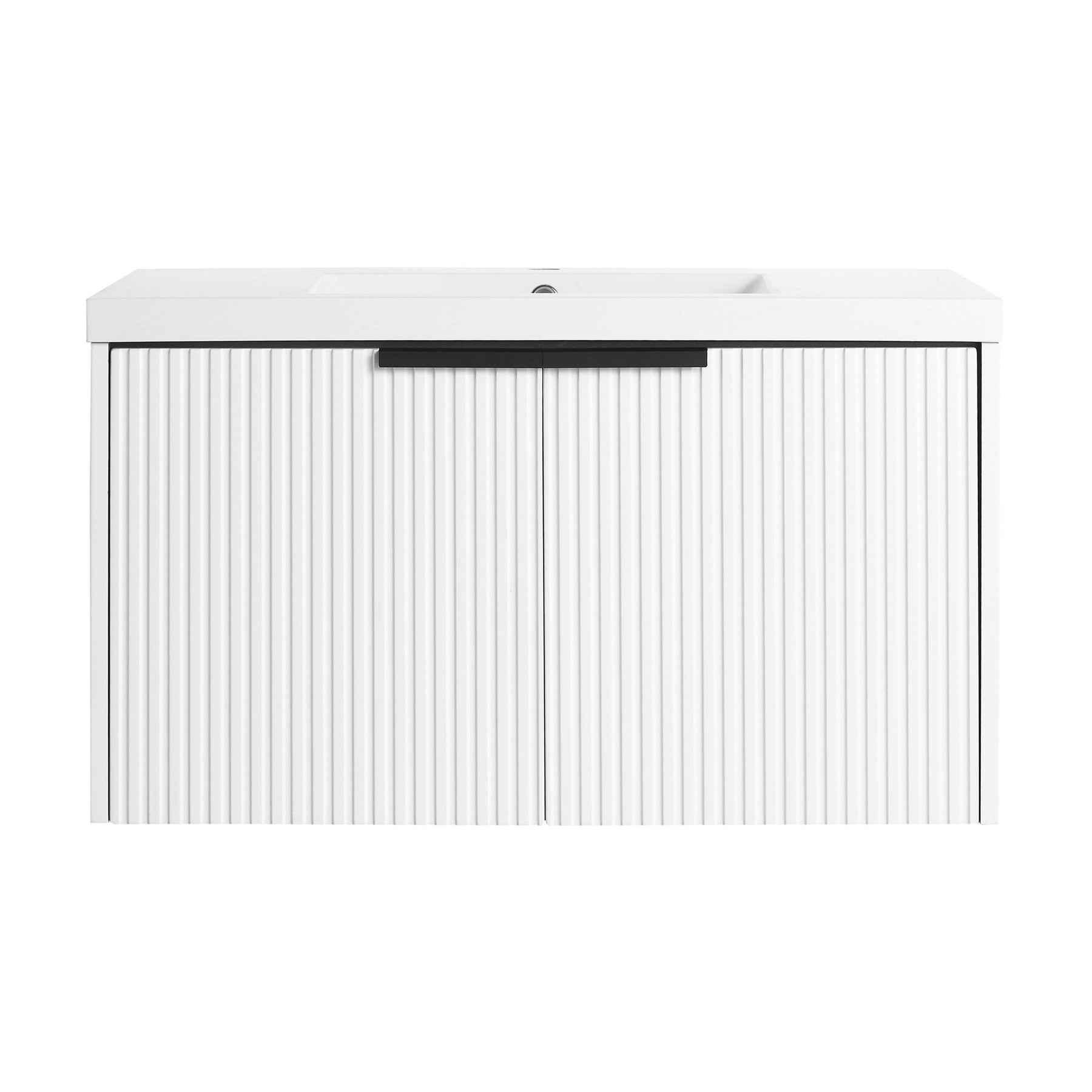 Contemporary Wall Mounted Bathroom Vanity With Resin Sink & Soft Close Doors - White
