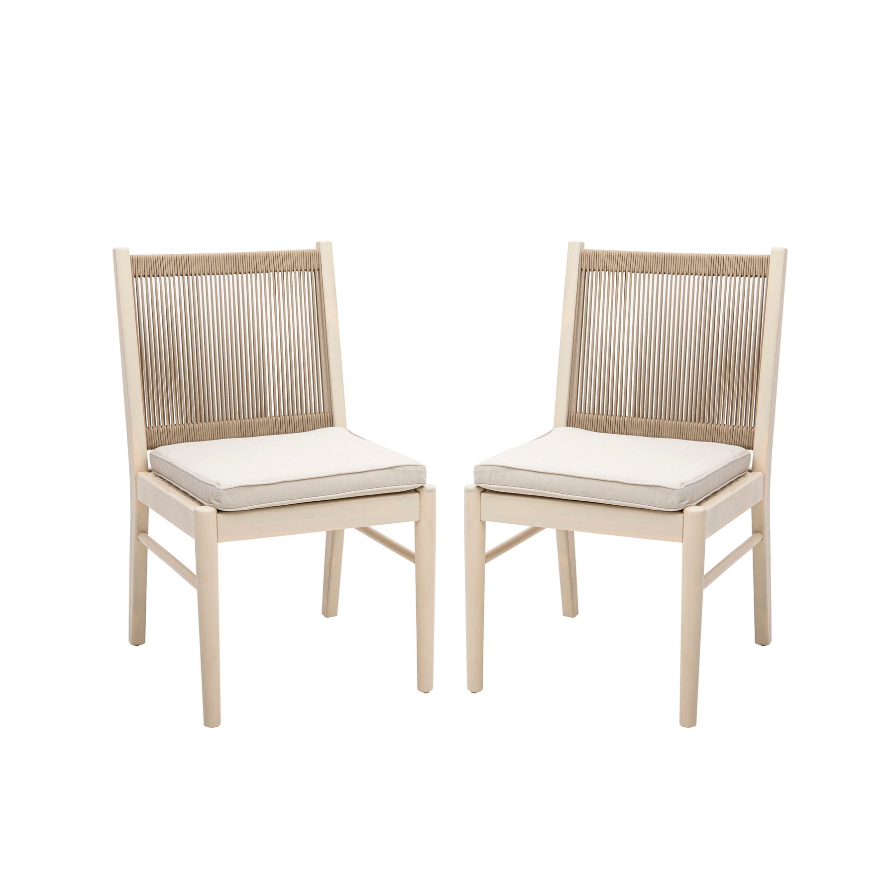 Cordoba - Dining Chair (Set of 2) With Acacia Wood Frame And Water Repellent Fabric - Beige / Yellow