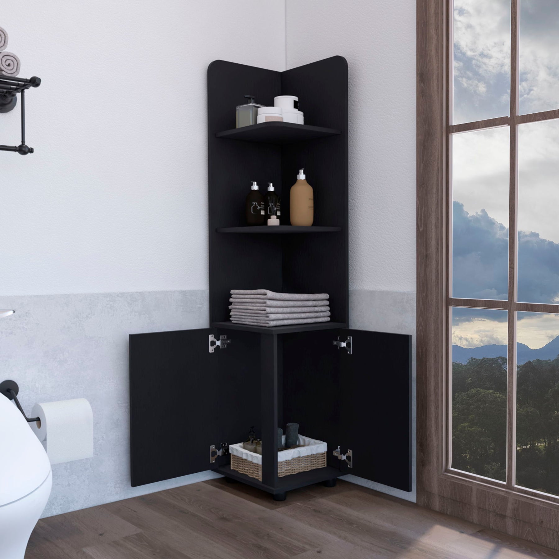 Corner Cabinet Tall With 3 Tier Shelf And 2 Door - Black