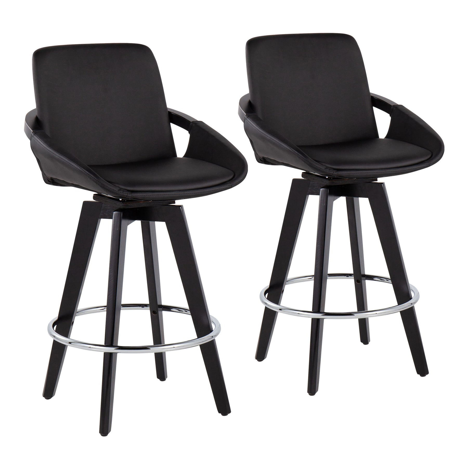 Cosmo - Contemporary Fixed Height Counter Stool With Swivel And Round Footrest (Set of 2) - Black