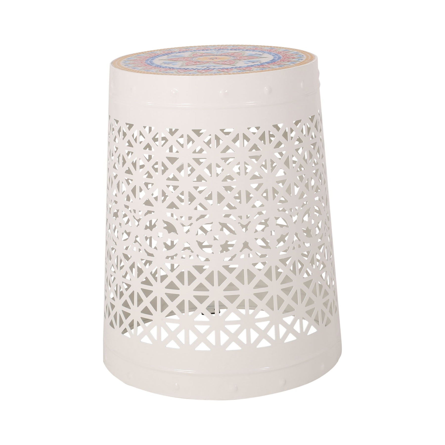Transitional Cranbrook Side Table With Tile Mosaic Top - White