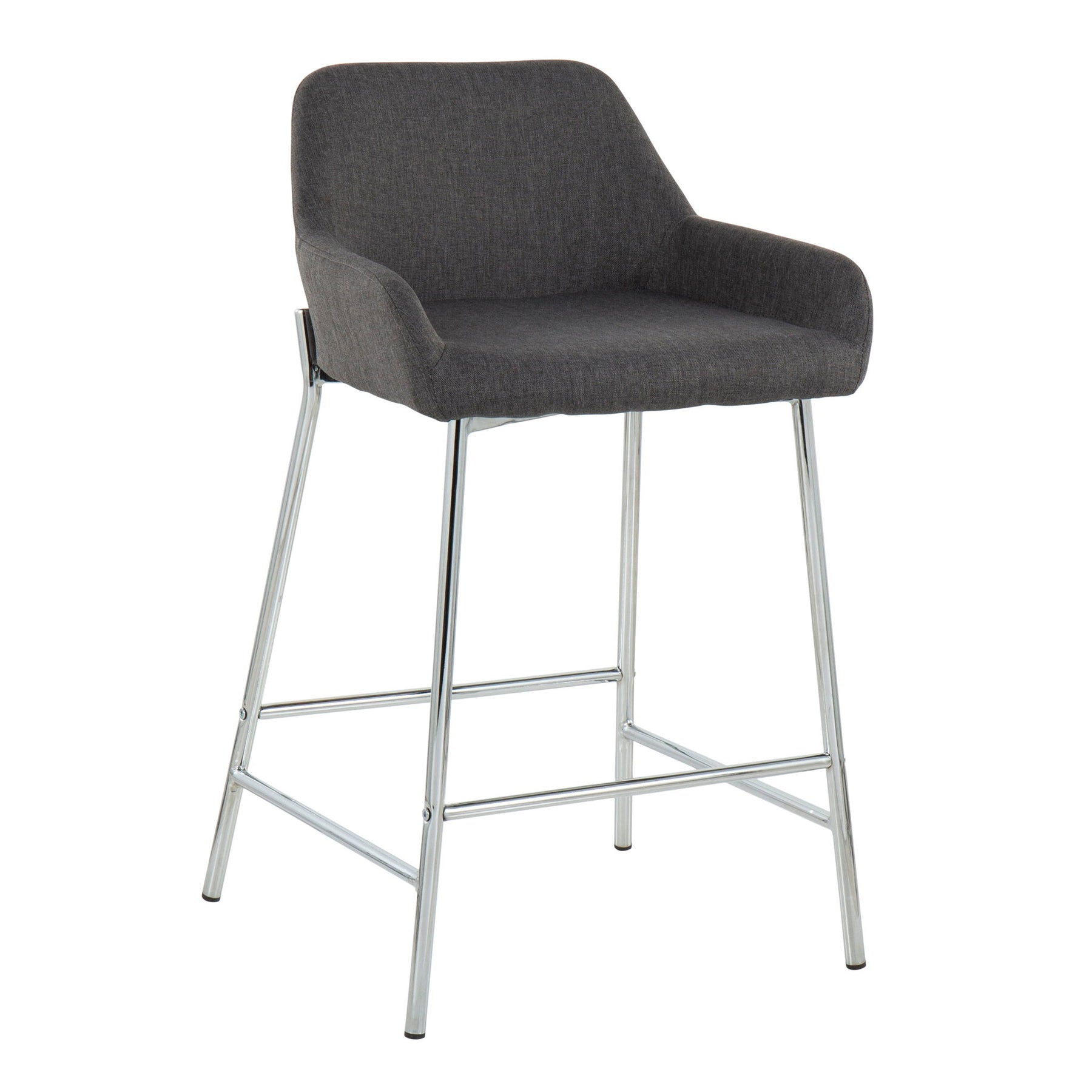 Daniella - Contemporary Fixed Height Counter Stool (Set of 2) - Chrome / Charcoal