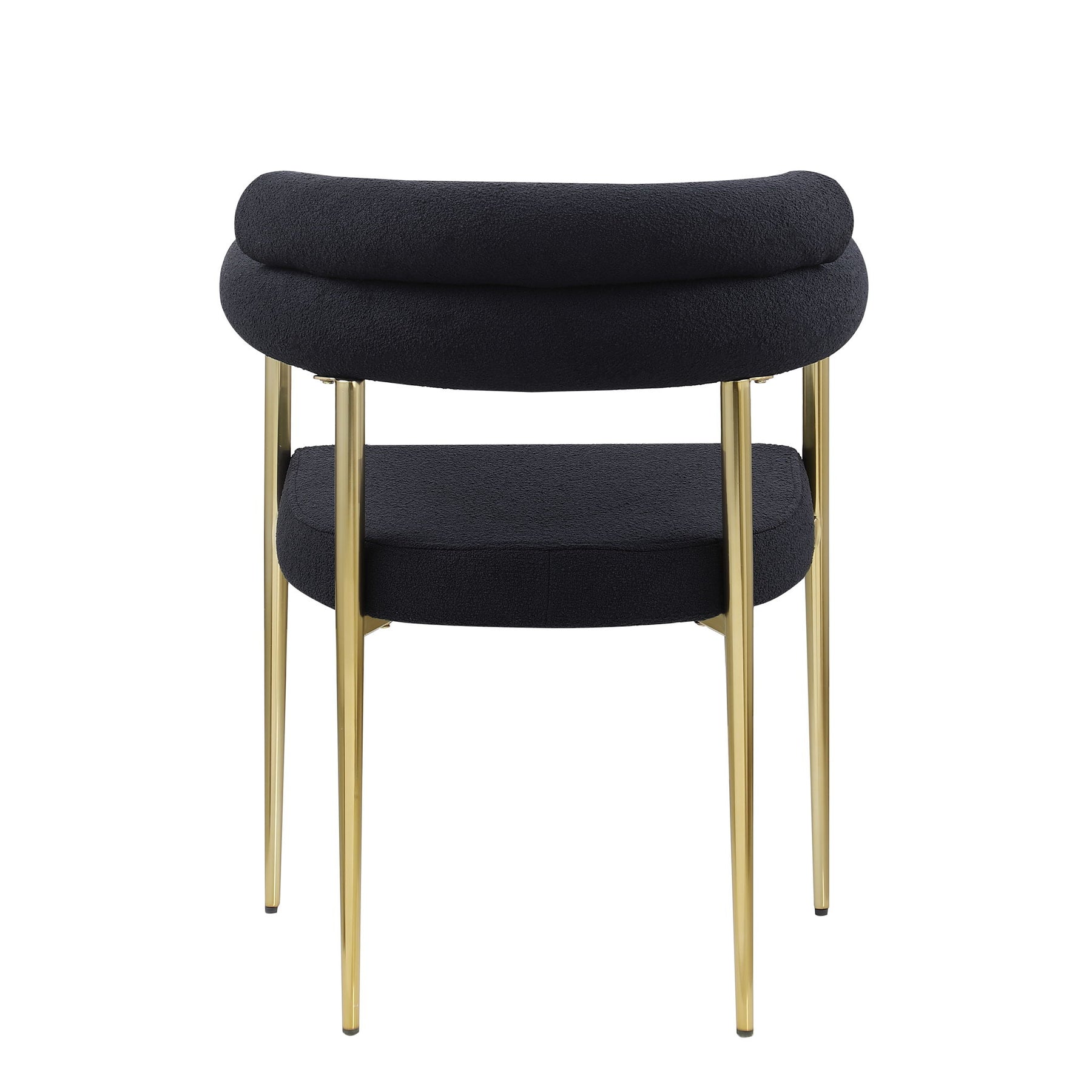 Dining Chairs (Set of 2), Mid-Century Modern Dining Chairs, Kitchen Dining Room Chairs, Round Boucle Backrest Sherpa Dining Chair With Brushed Bronze Metal Legs - Black