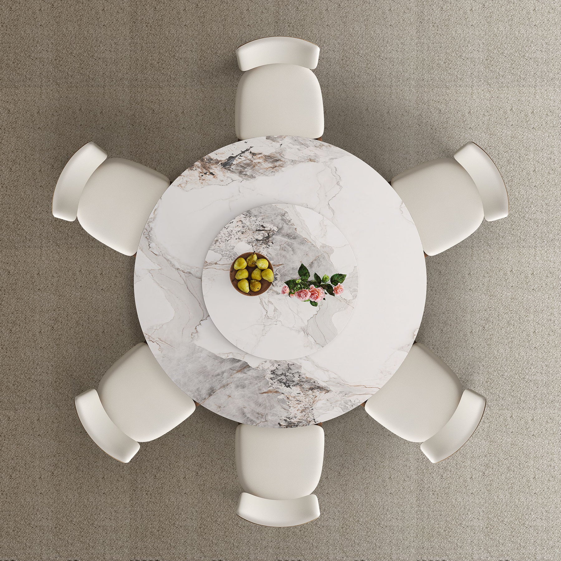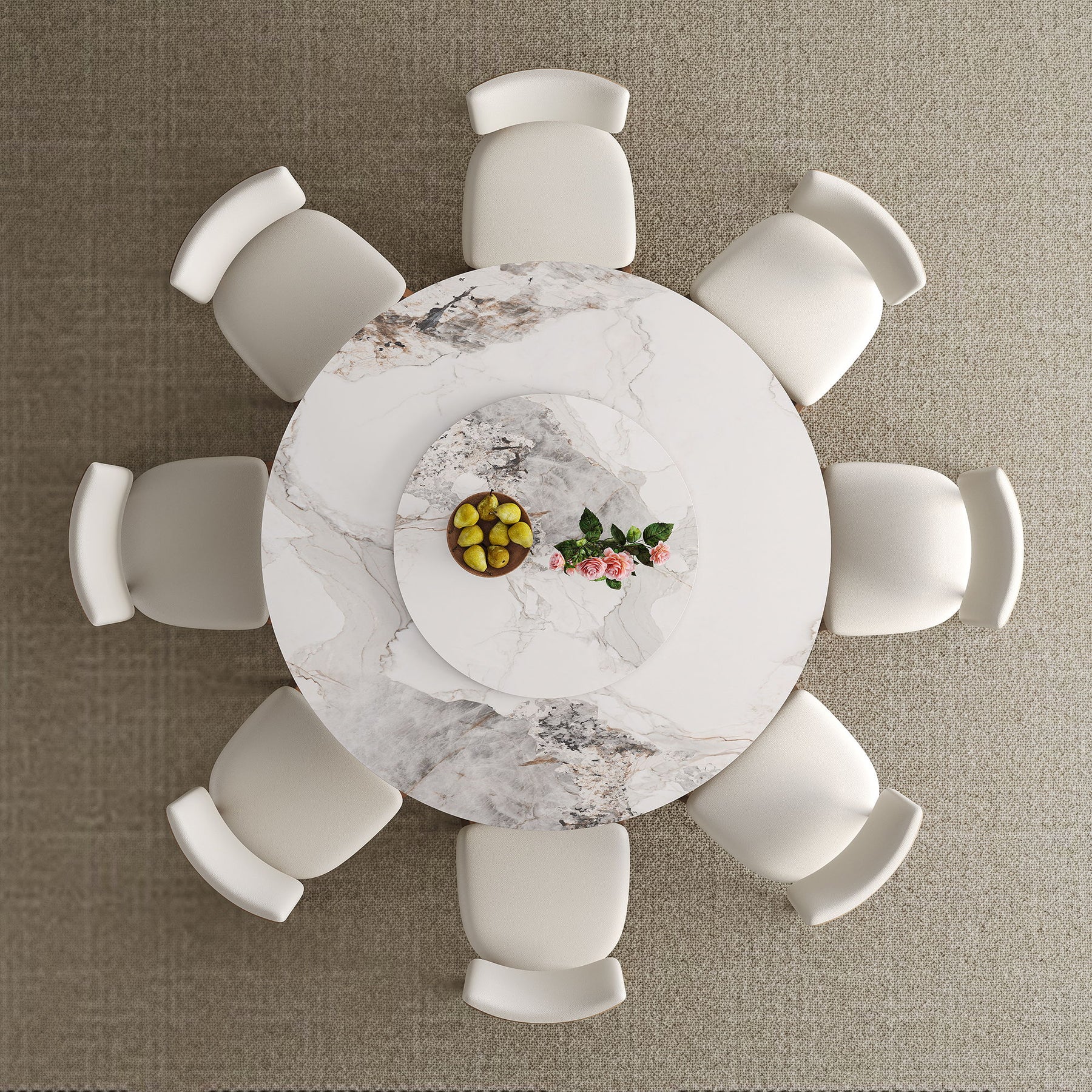 Dining Table Set, Round Turntable, Seats 6 - 8 Top With Textures - White