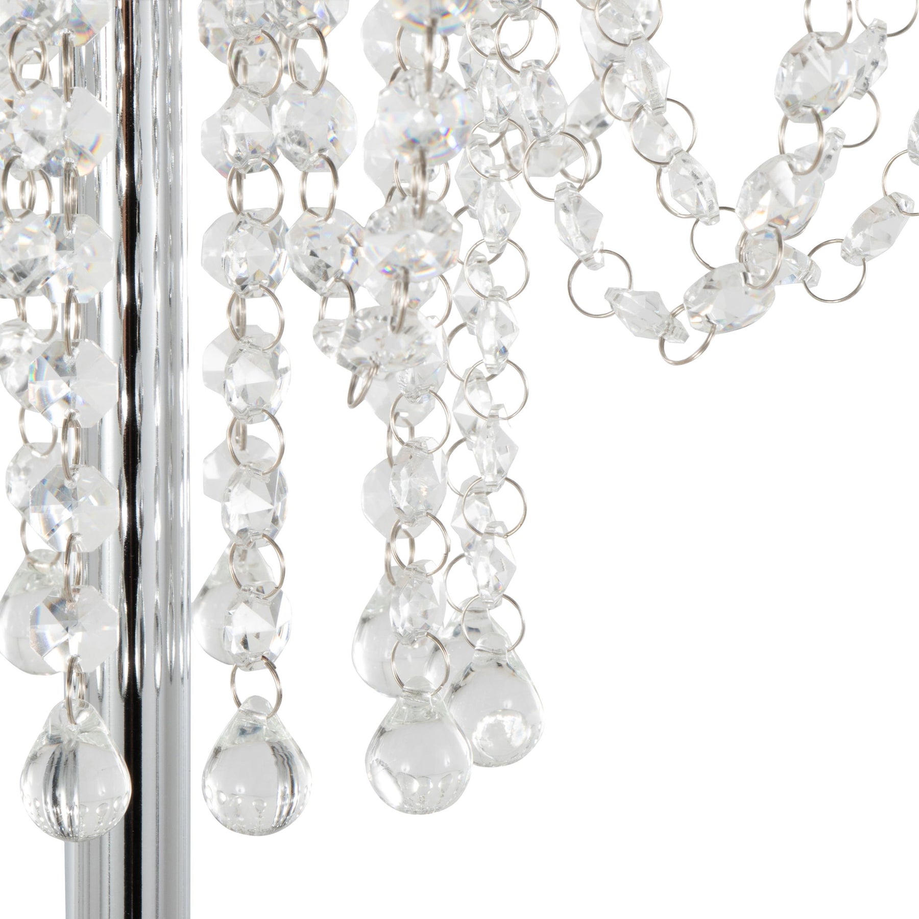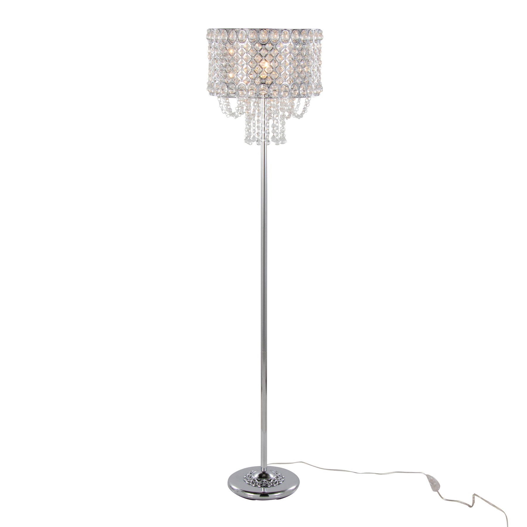 - Elegant Design: The Droplets Floor Lamp features a stunning metal shade adorned with individually threaded crystals and hanging crystal beads, offering a glamorous touch to modern interiors.