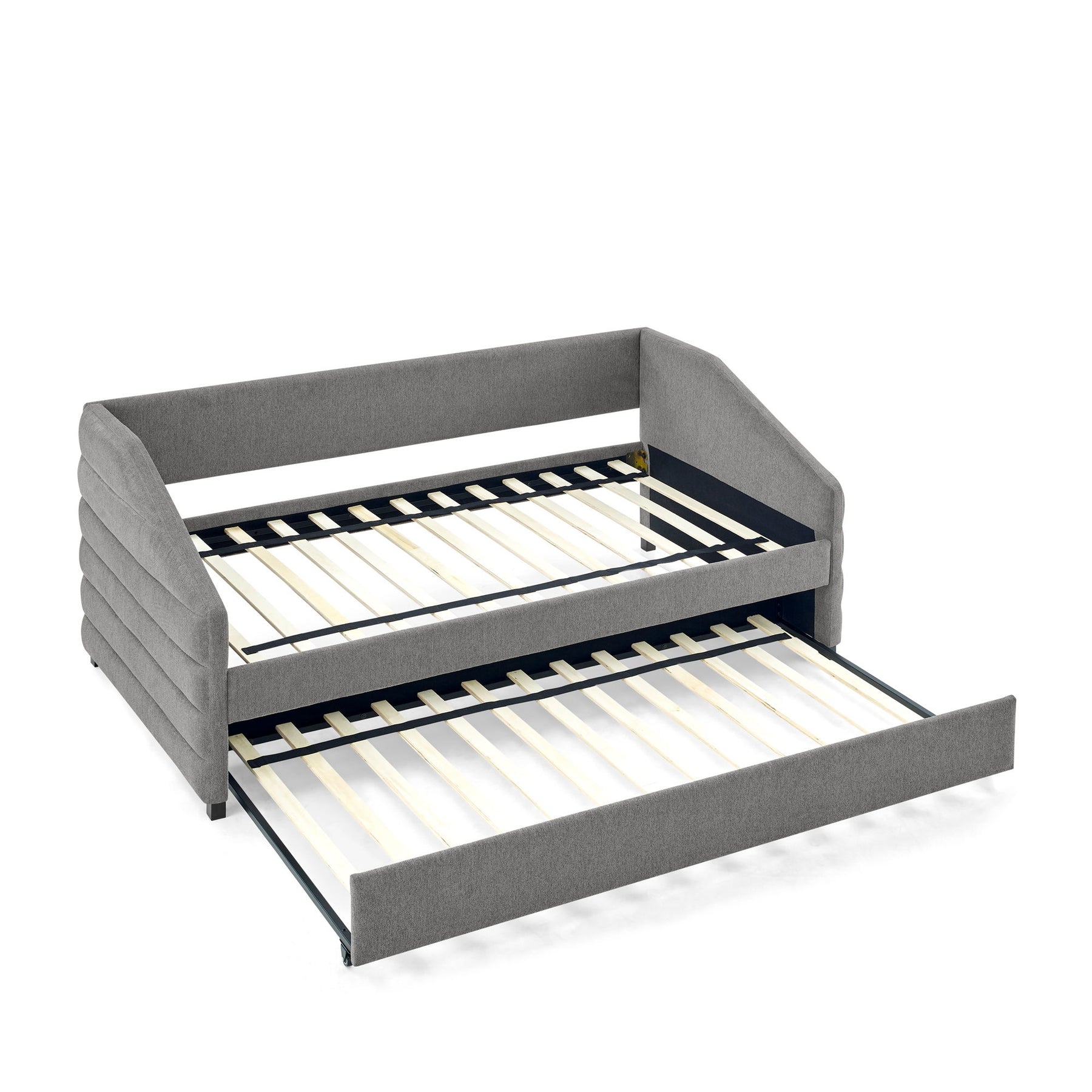 Elegant Upholstered Twin Size Daybed With Trundle Linen - Gray