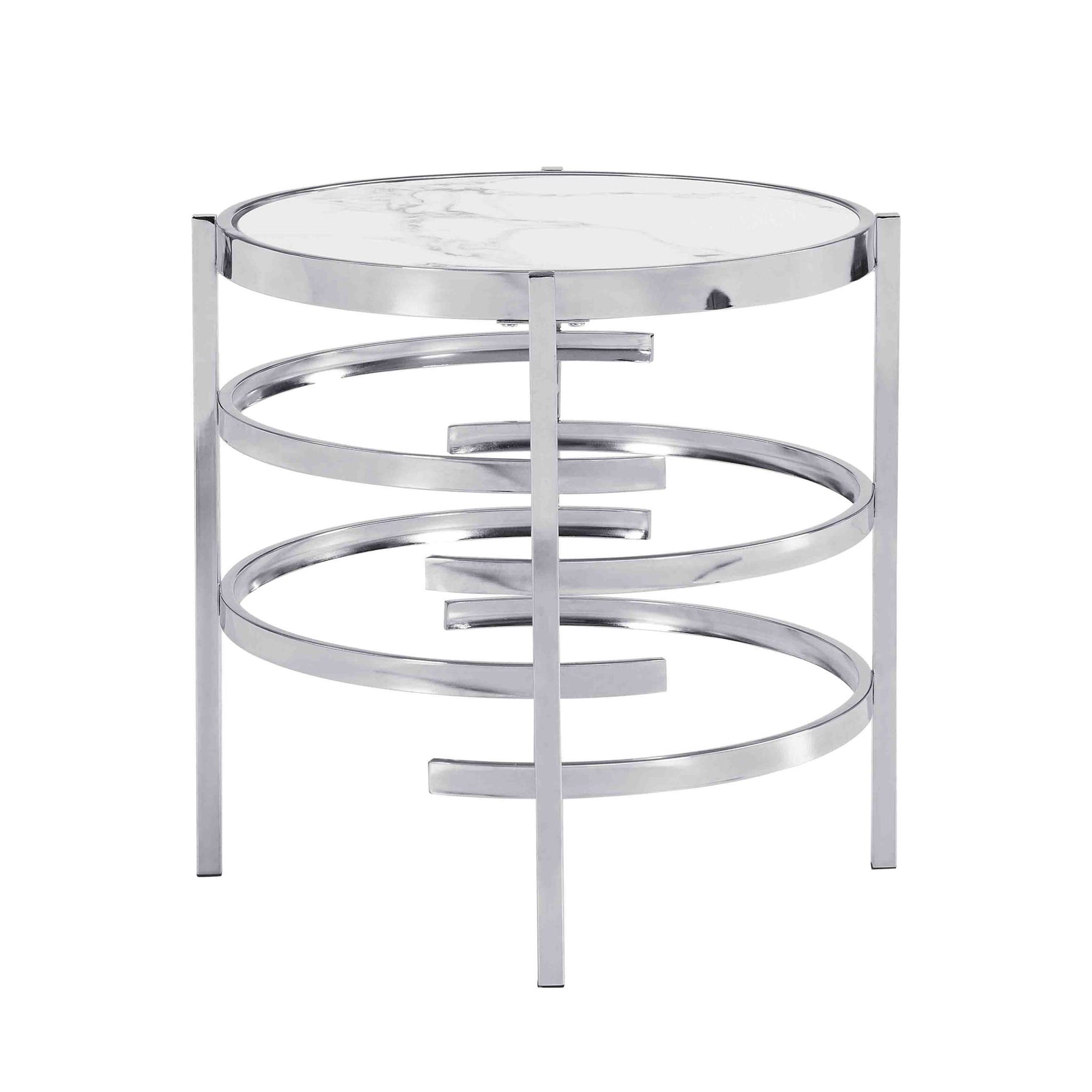 Modern Round End Table With Sintered Stone Top For Living Room - Chrome / Silver