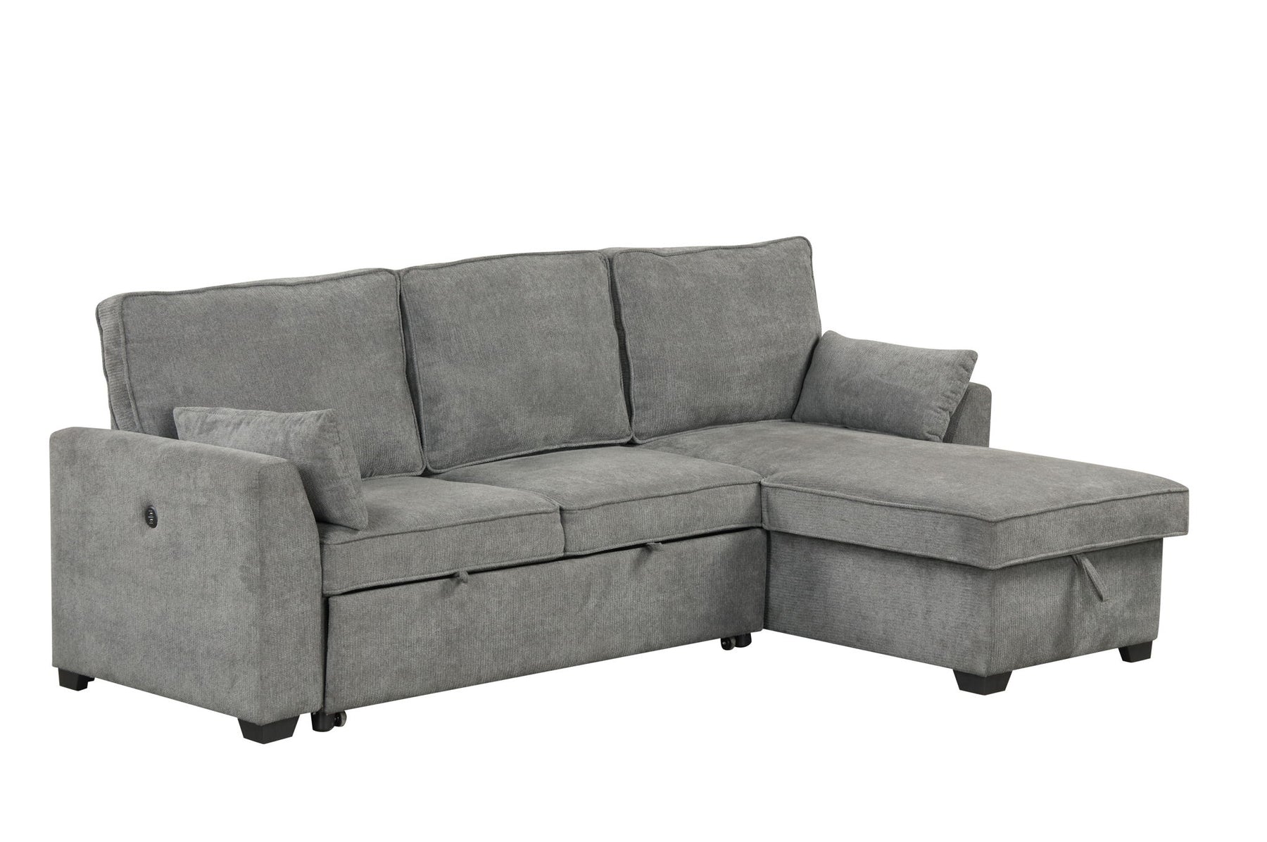 Ember - Sleeper Sectional With Reversible Storage Chaise, USB Charging Ports, And Cupholders - Gray