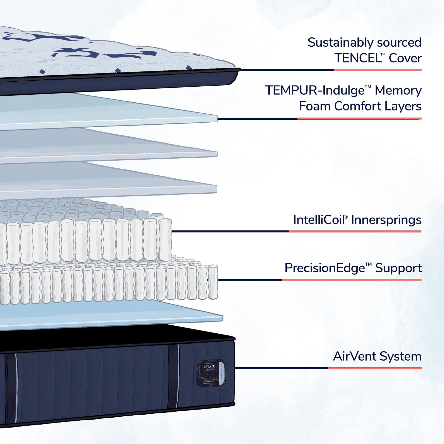 Our Stearns & Foster Estate Collection takes comfort to the next level featuring our TEMPUR-Indulge™ Memory Foam for enhanced pressure relief and our exclusive IntelliCoil innersprings for added support—all night long.