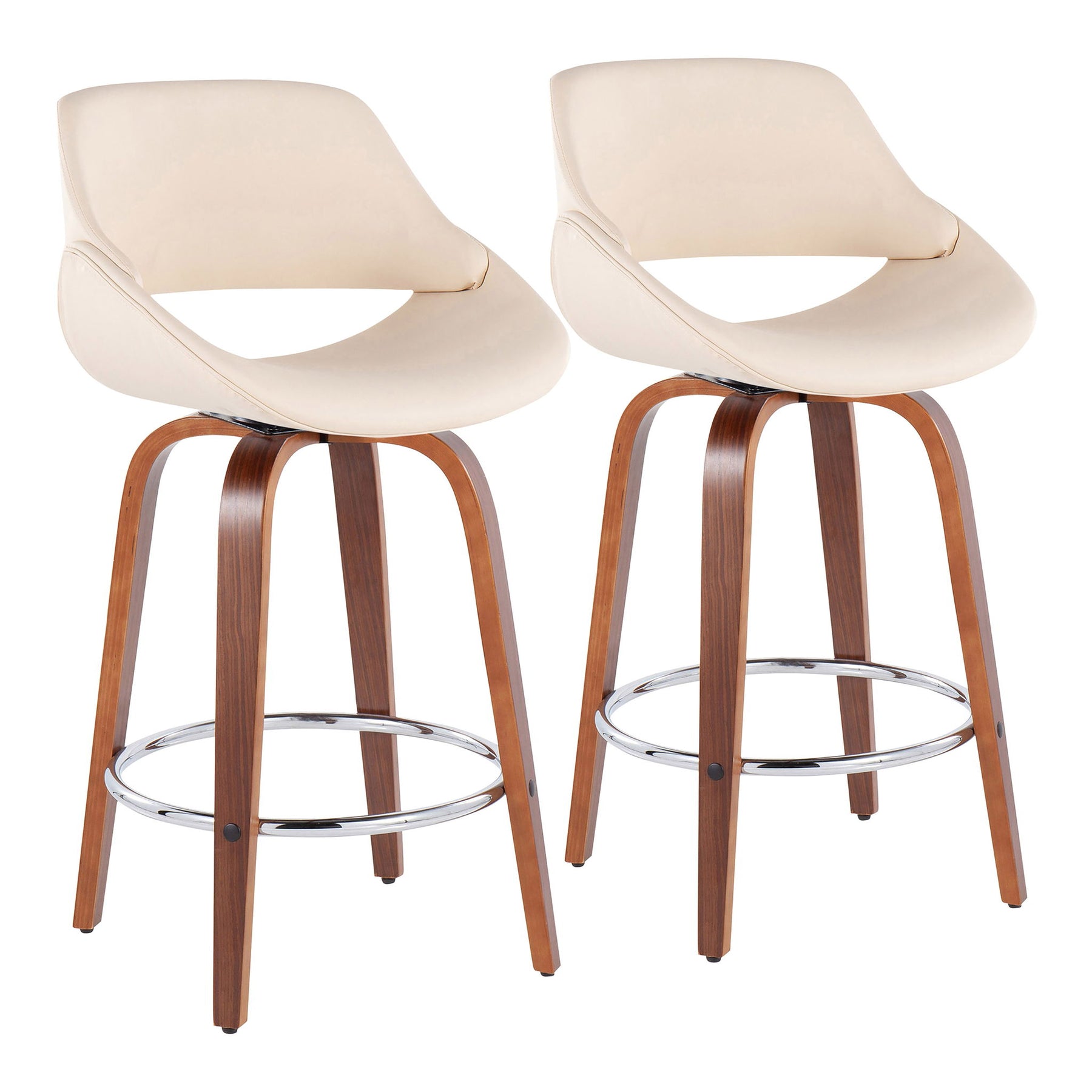 Fabrico - Mid-Century Modern Fixed Height Counter Stool With Round Footrest (Set of 2) - Walnut / Cream