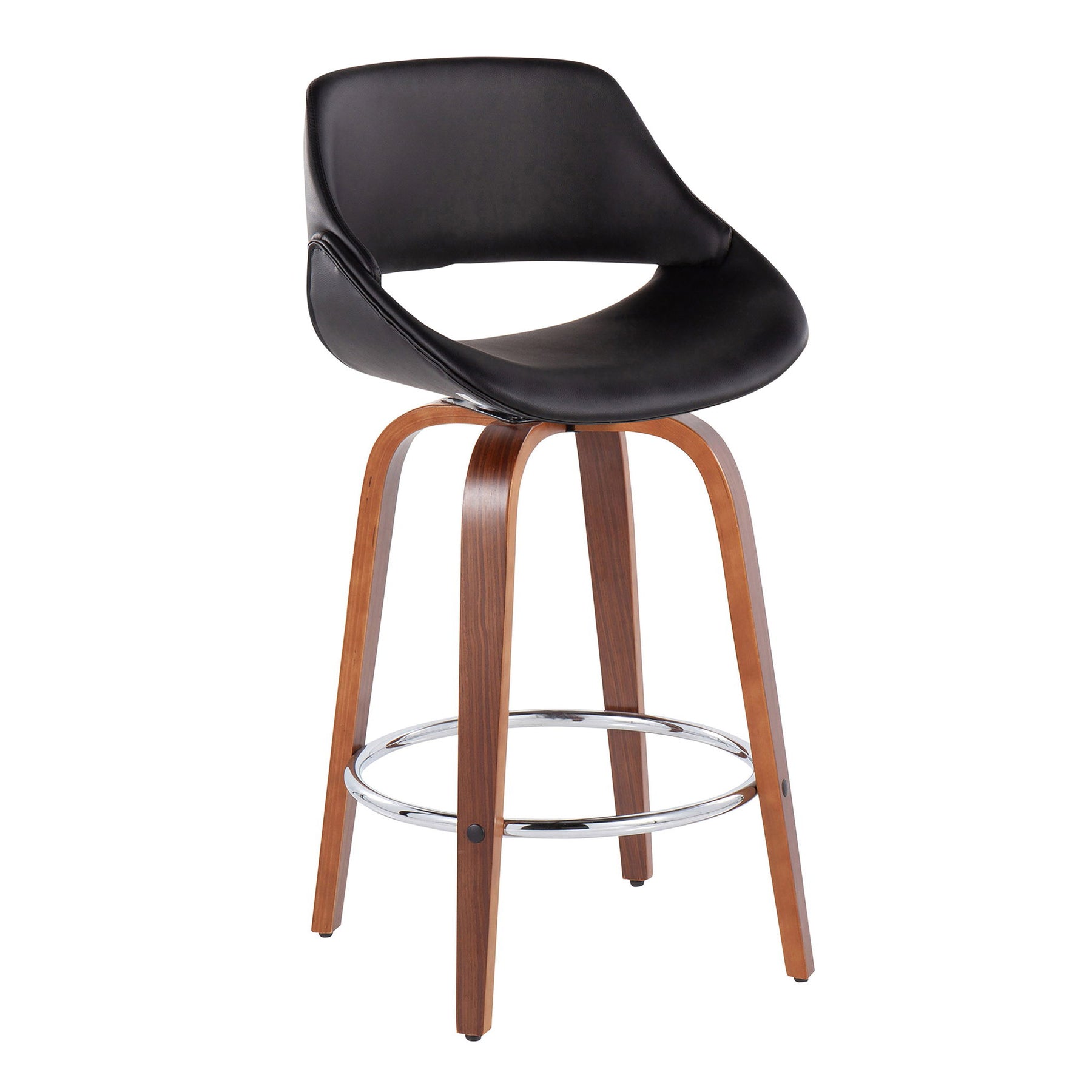 Fabrico - Mid-Century Modern Fixed Height Counter Stool With Round Footrest (Set of 2) - Walnut / Black