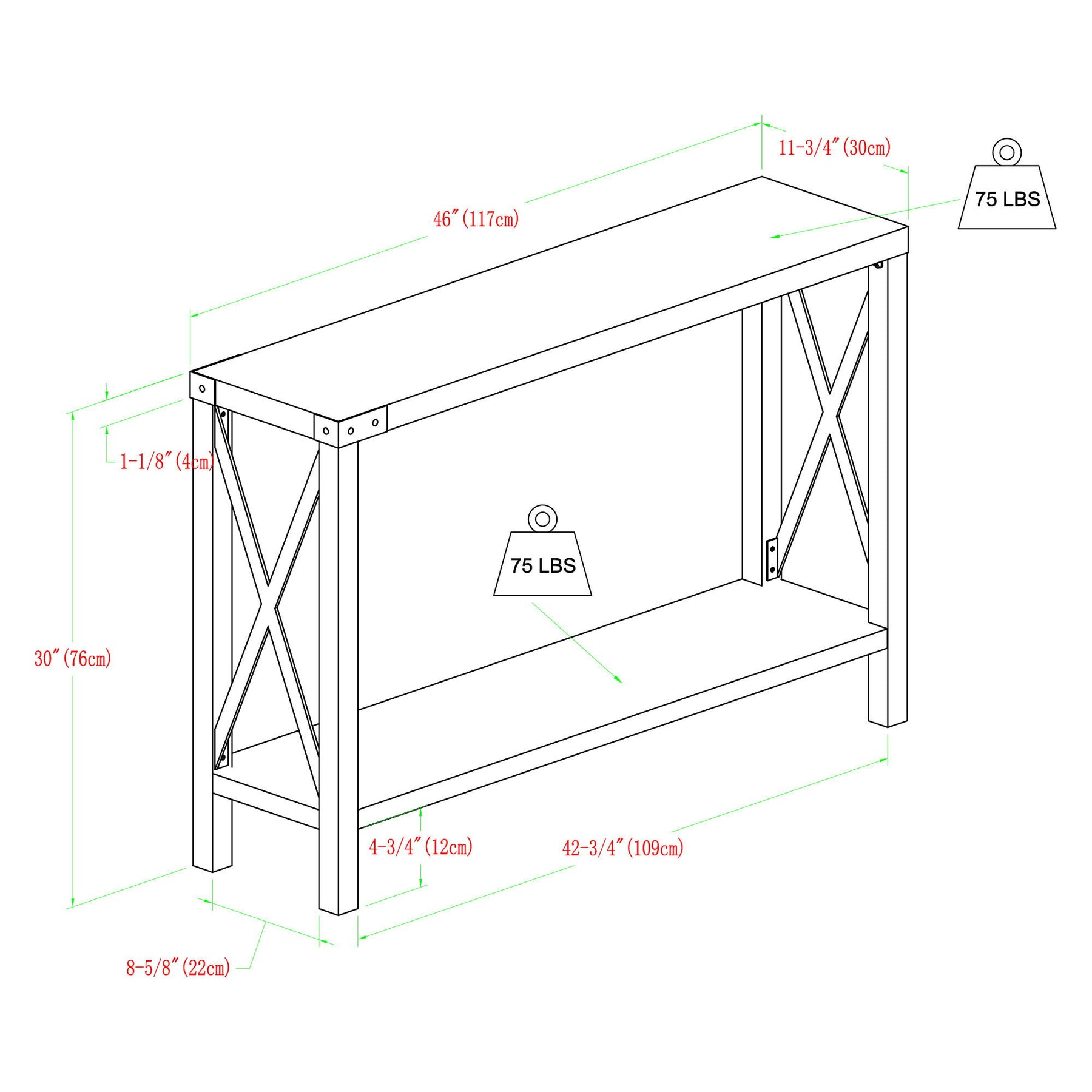 46.0"W x 12.0"D x 30.0"H - 35.0 lb