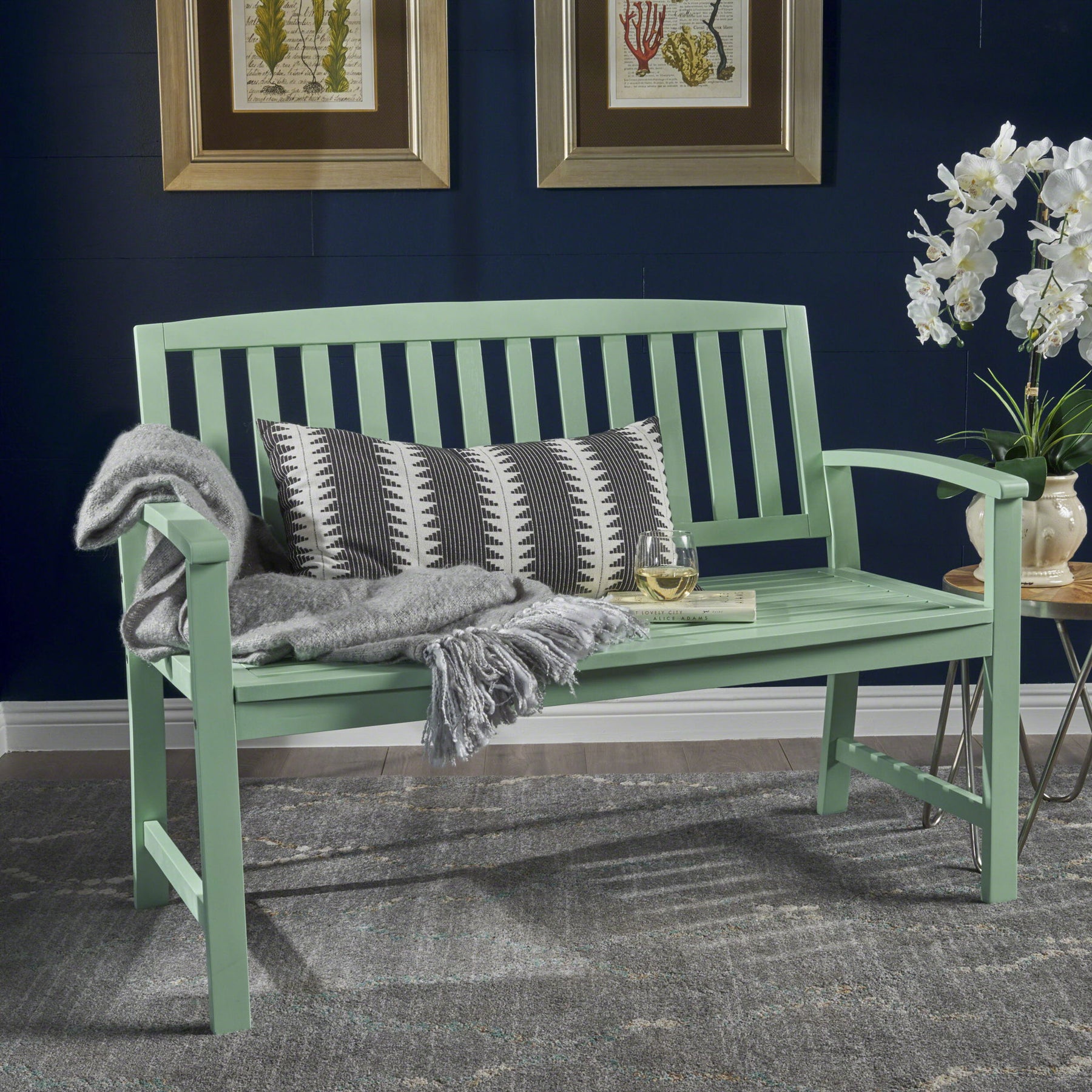 Farmhouse Style Loja Bench Indoor / Outdoor Acacia Wood - Mint