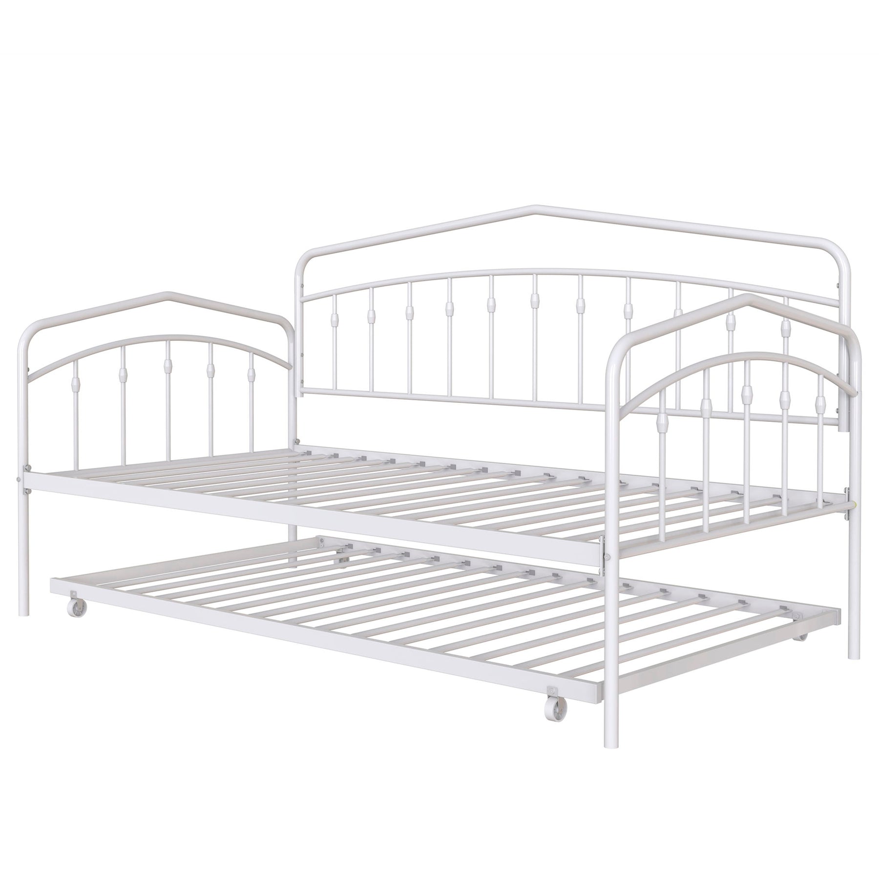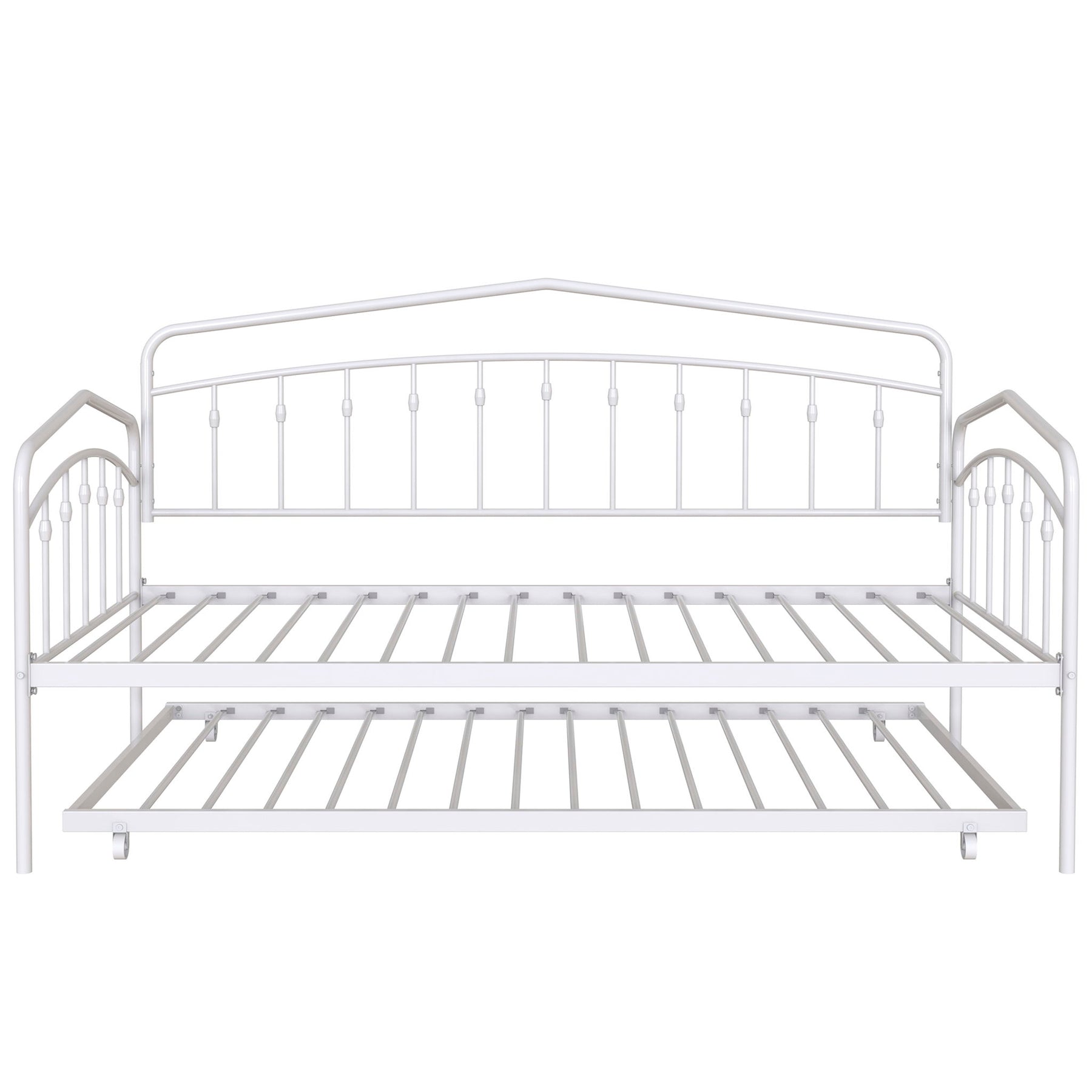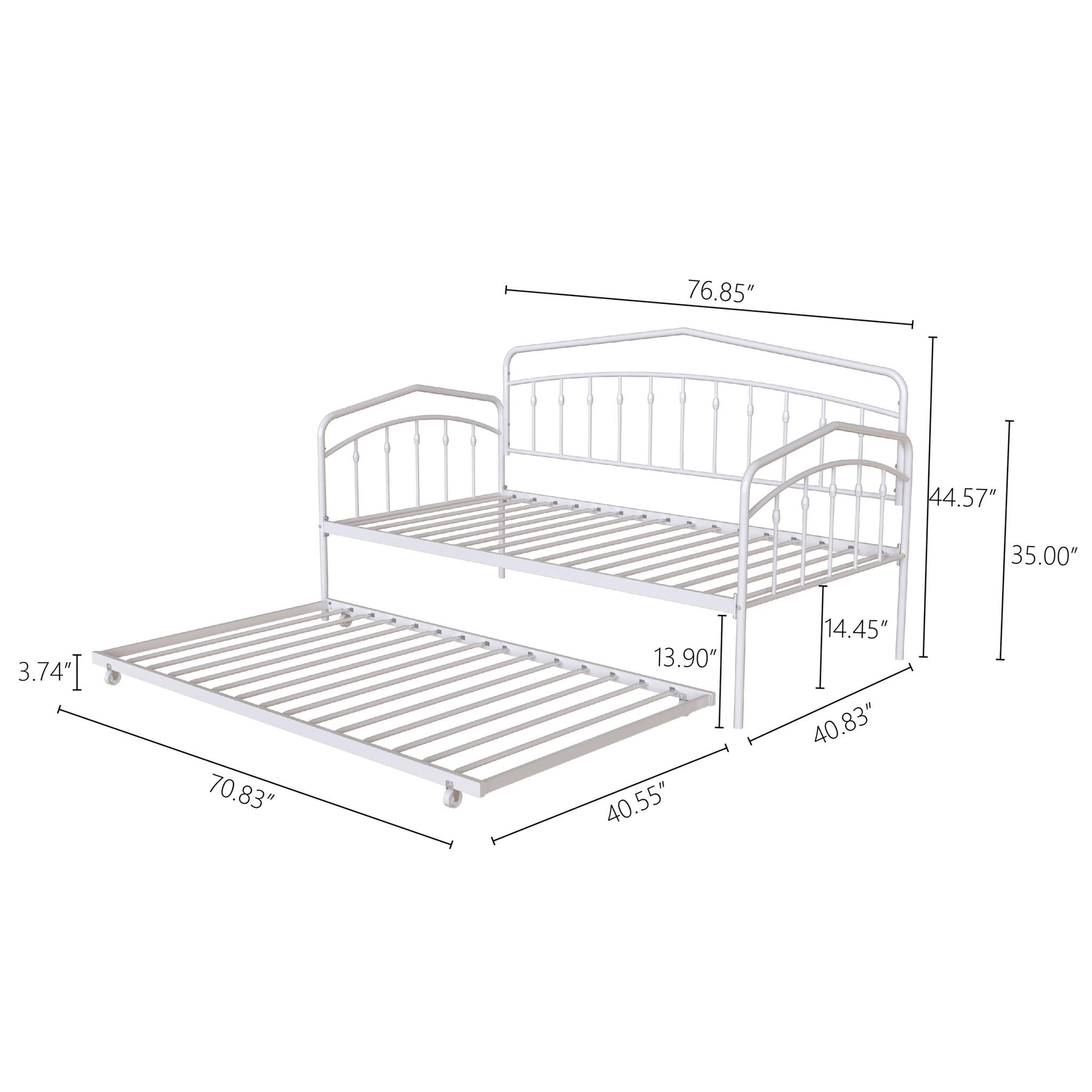 - Durable Metal Frame: Features secured metal slats for support, includes a trundle with easy-glide casters for extra sleeping space.