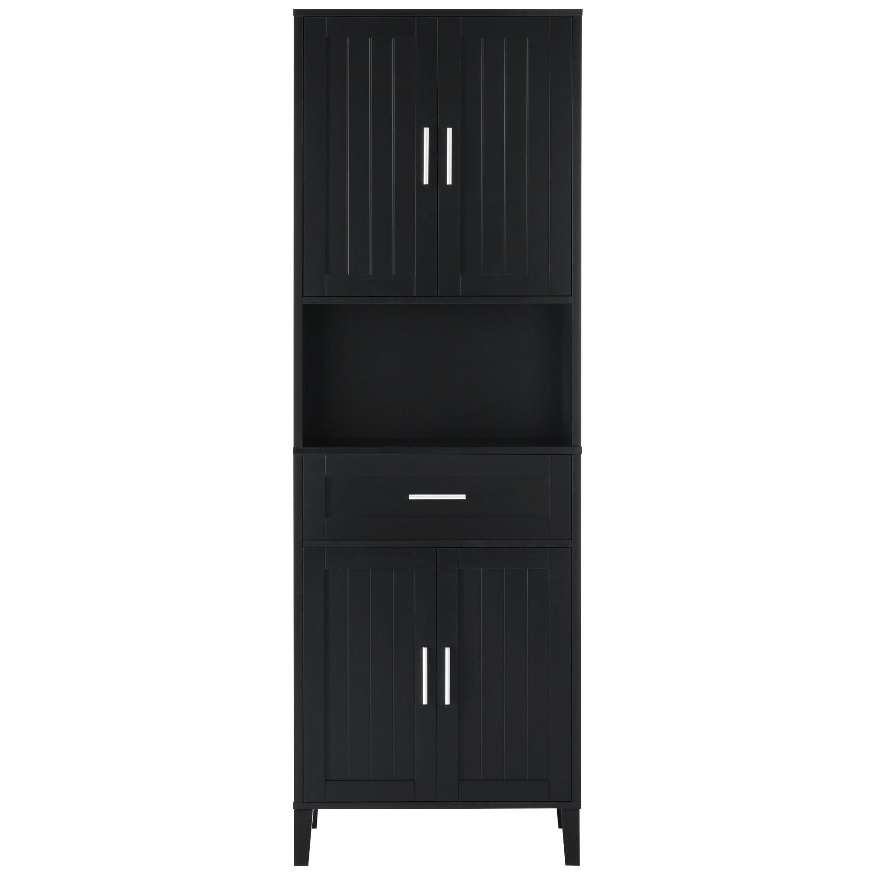 Freestanding Tall Bathroom Cabinet With Soft Close Doors And Adjustable Shelves - Black