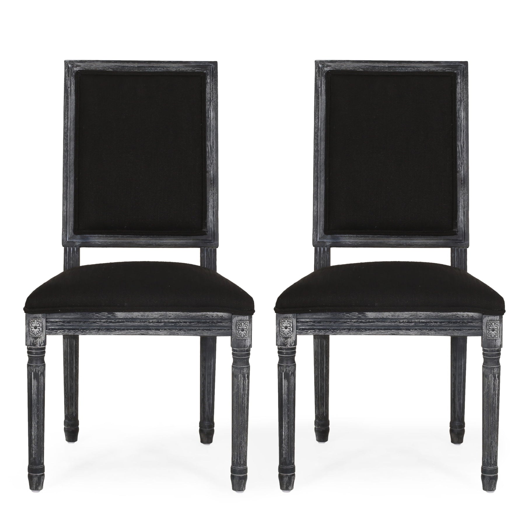 French Country Style Dining Chair Set With Upholstered Seating And Fluted Legs - Black