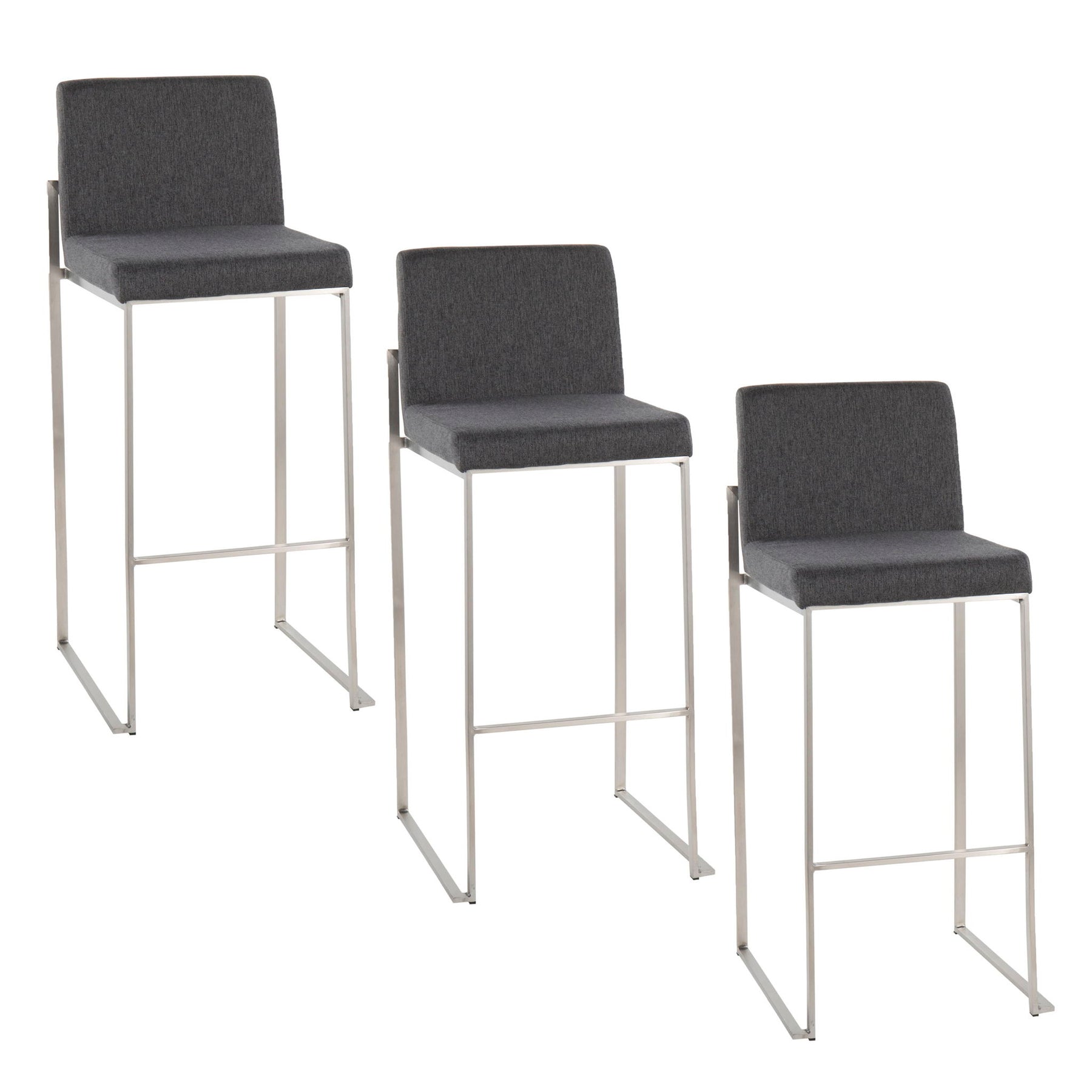 Fuji - Contemporary High Back Barstool (Set of 3) - Gray