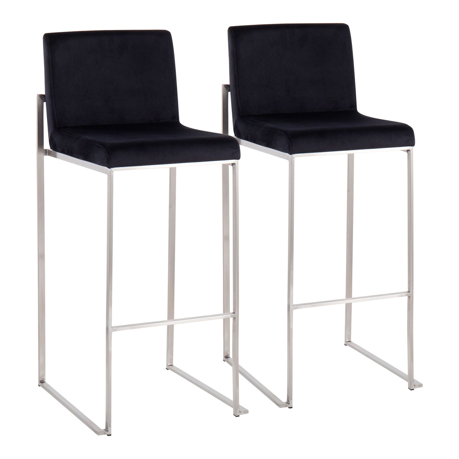 Fuji - Contemporary High Back Barstool (Set of 2) - Black - Velvet