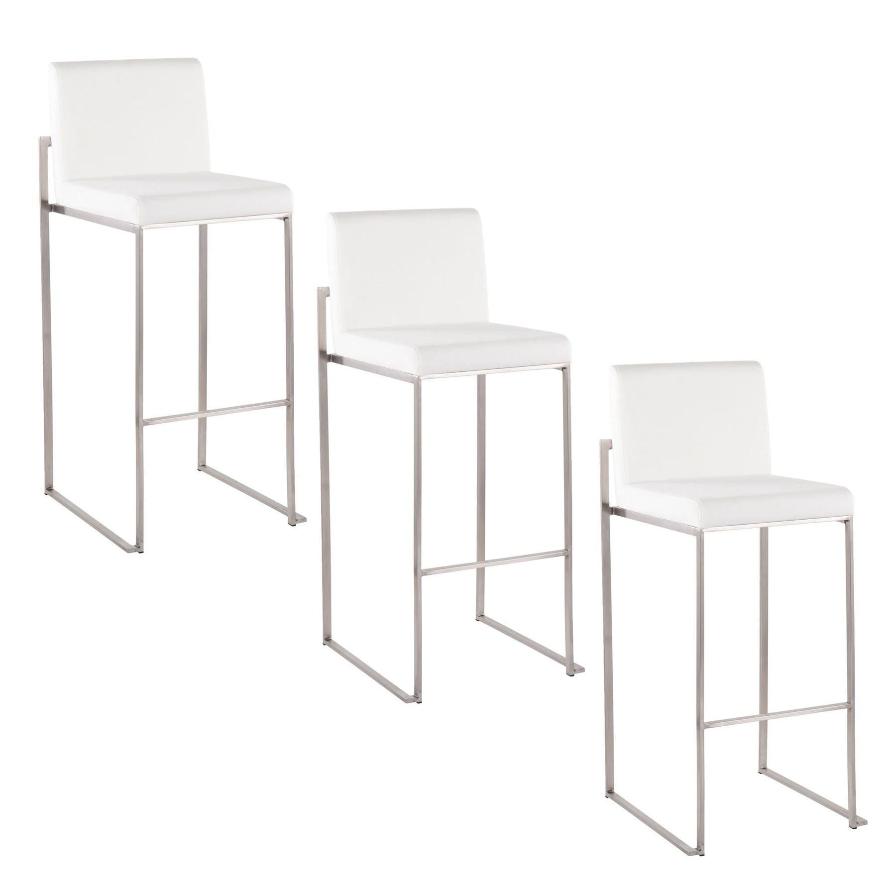 Fuji - Contemporary High Back Barstool (Set of 3) - White