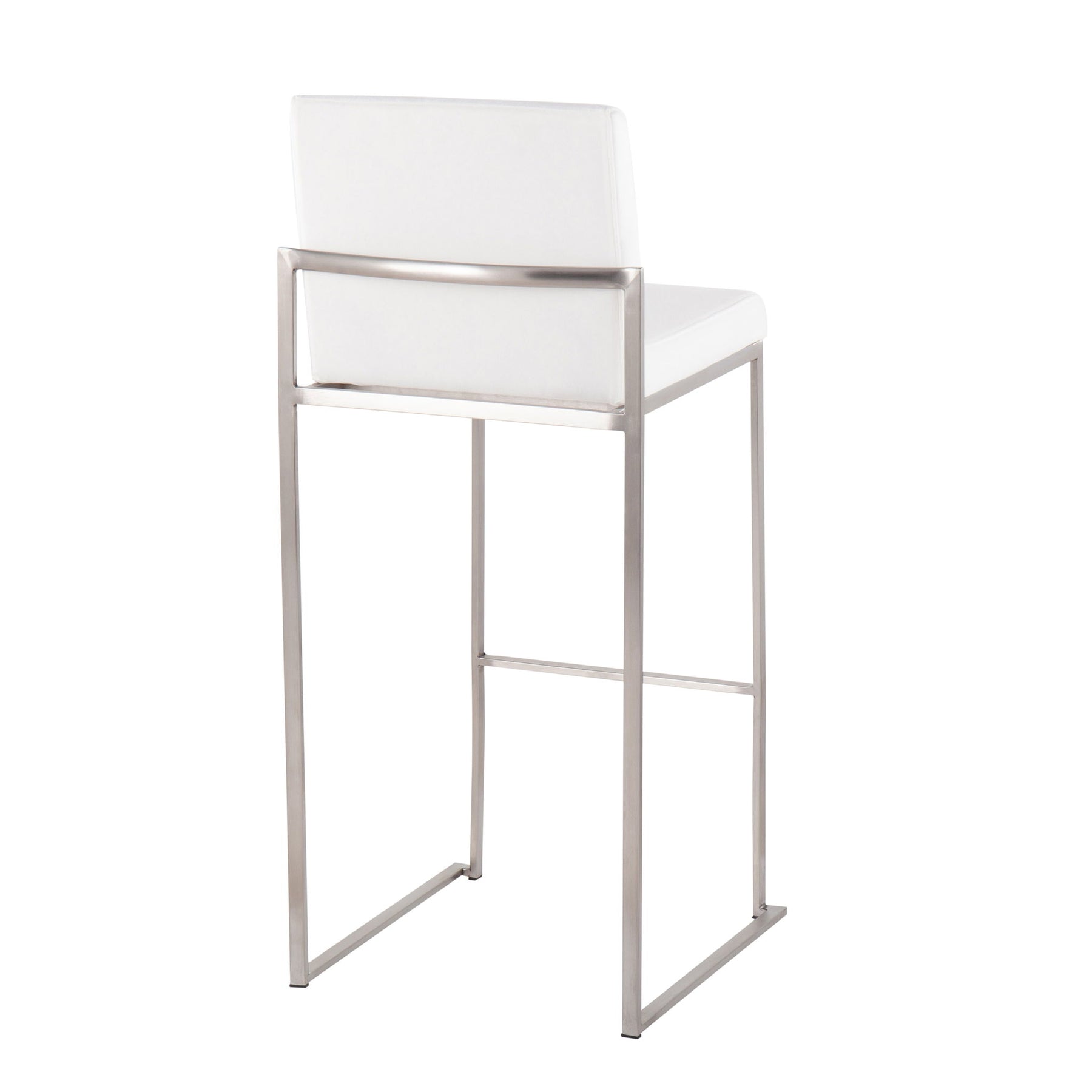 Fuji - Contemporary High Back Barstool (Set of 3) - White - Faux Leather