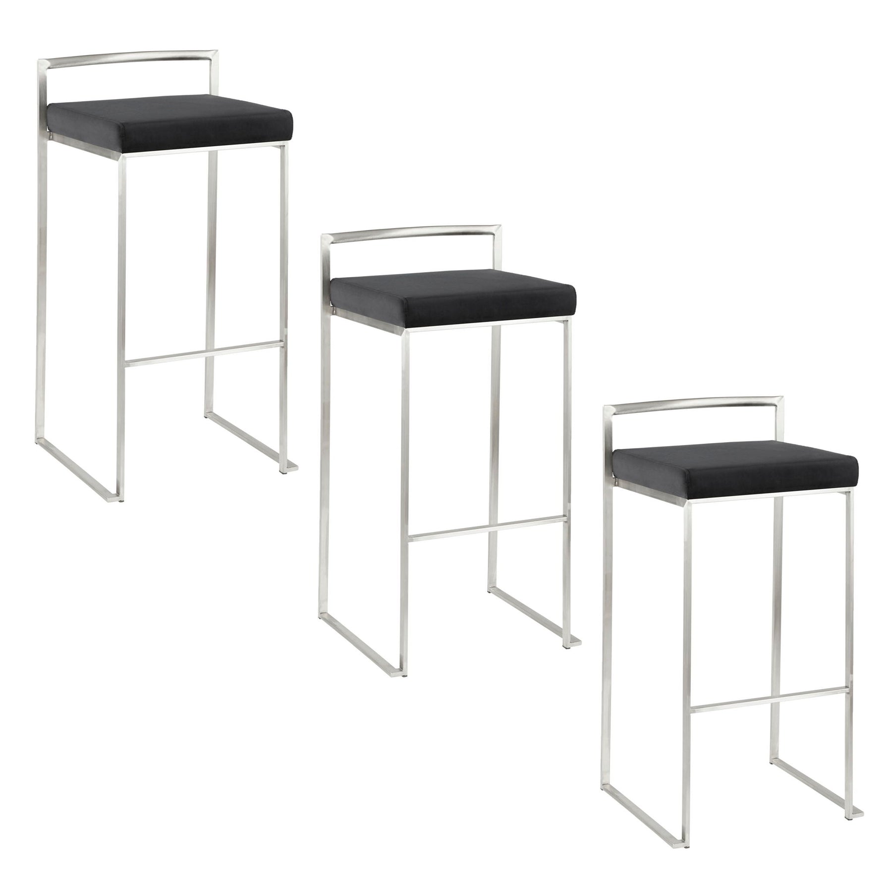 Fuji - Contemporary Stackable Barstool (Set of 3) - Black