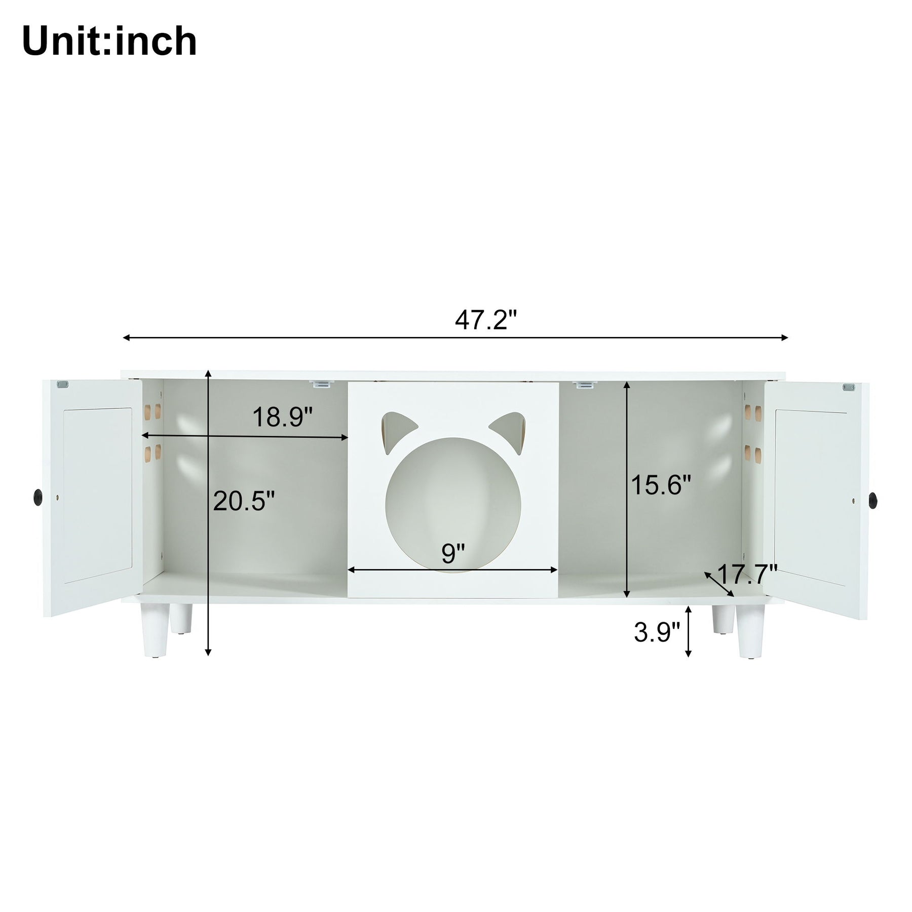 - DESIGN: Furniture style PET FRIENDLY Cream white cabinet cat litter box with side table and scratchers board.