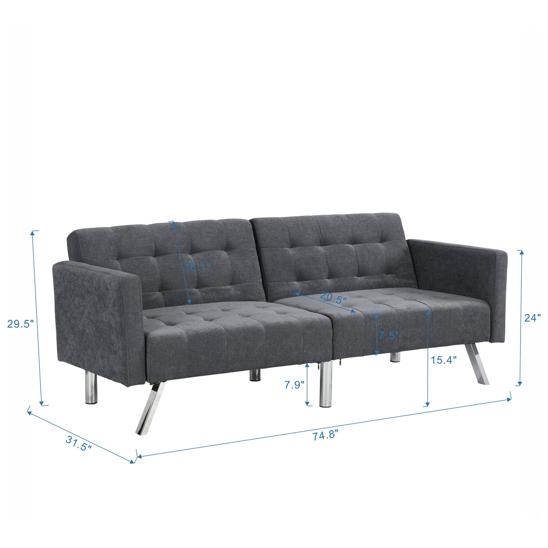Futon Sofa Bed Convertible Folding Lounge Couch, Armrests - Dark Gray