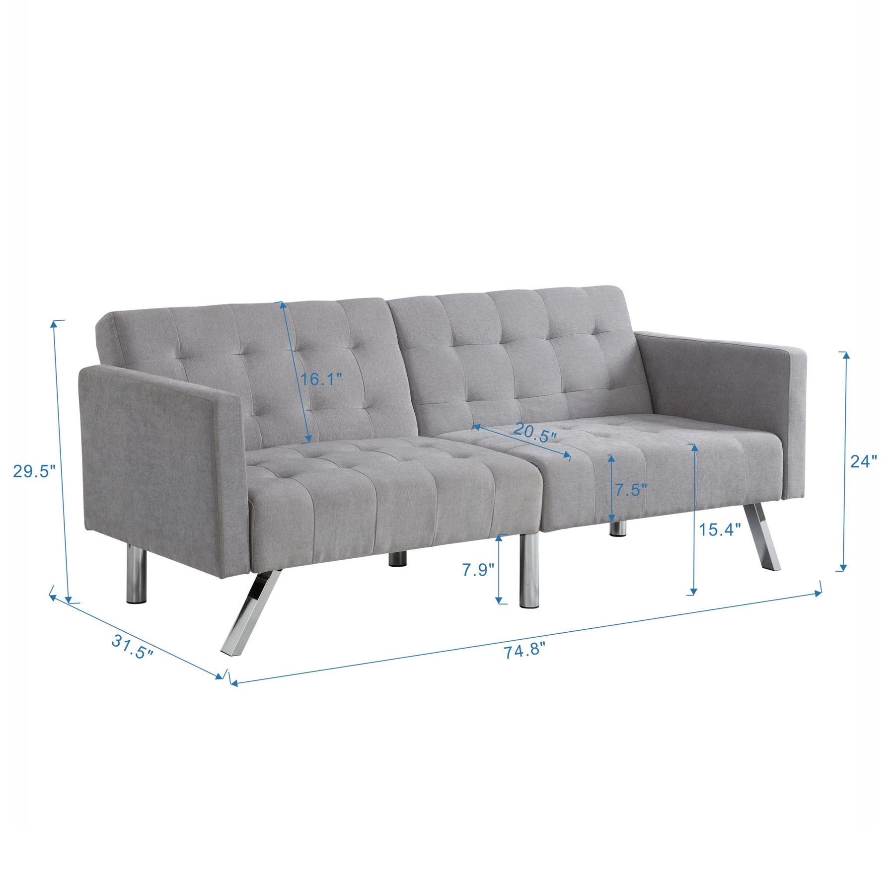 Futon Sofa Bed Convertible Folding Lounge Couch, Armrests - Light Gray