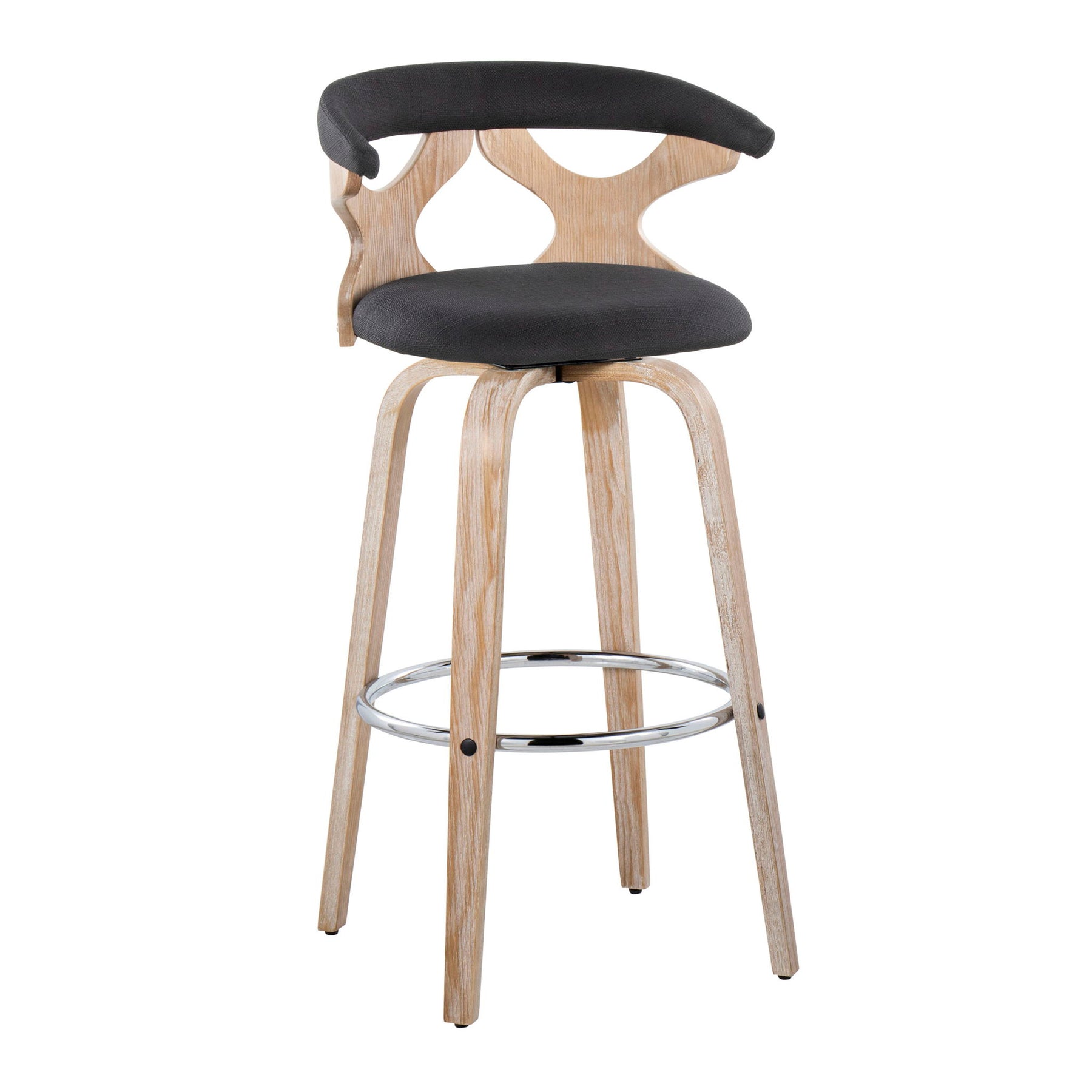 Gardenia - Contemporary Fixed Height Barstool With Swivel With Round Footrest (Set of 2) - White Washed / Charcoal