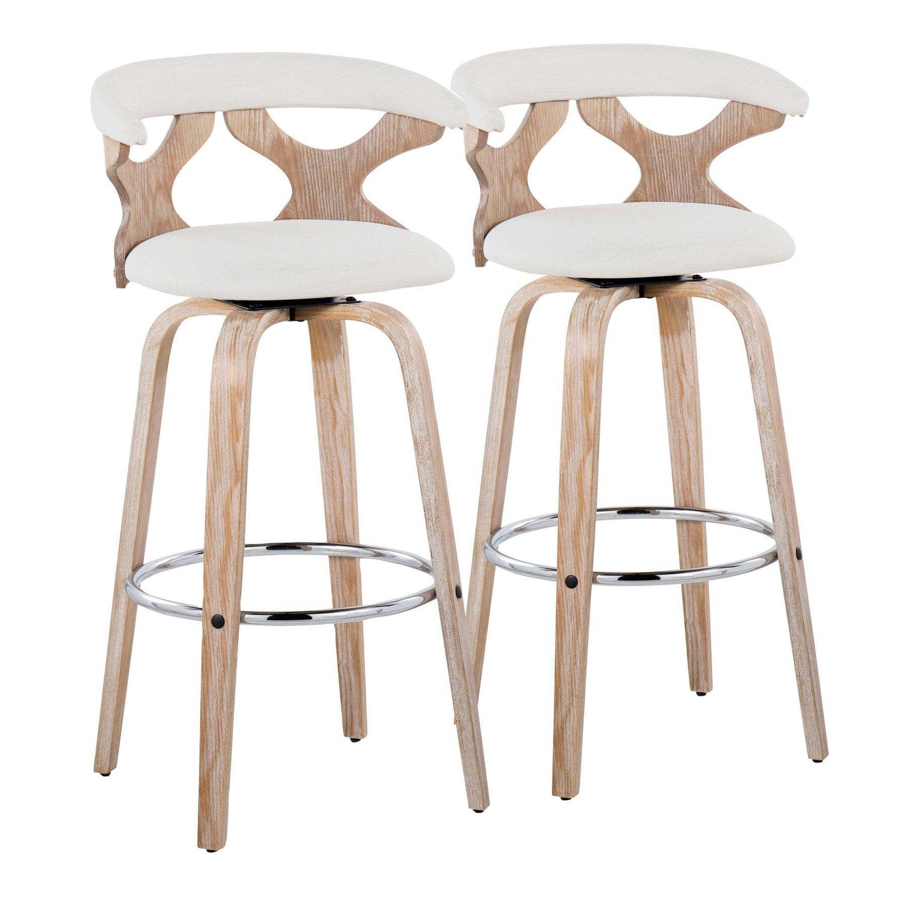 Gardenia - Contemporary Fixed Height Barstool With Swivel With Round Footrest (Set of 2) - White Washed / Cream