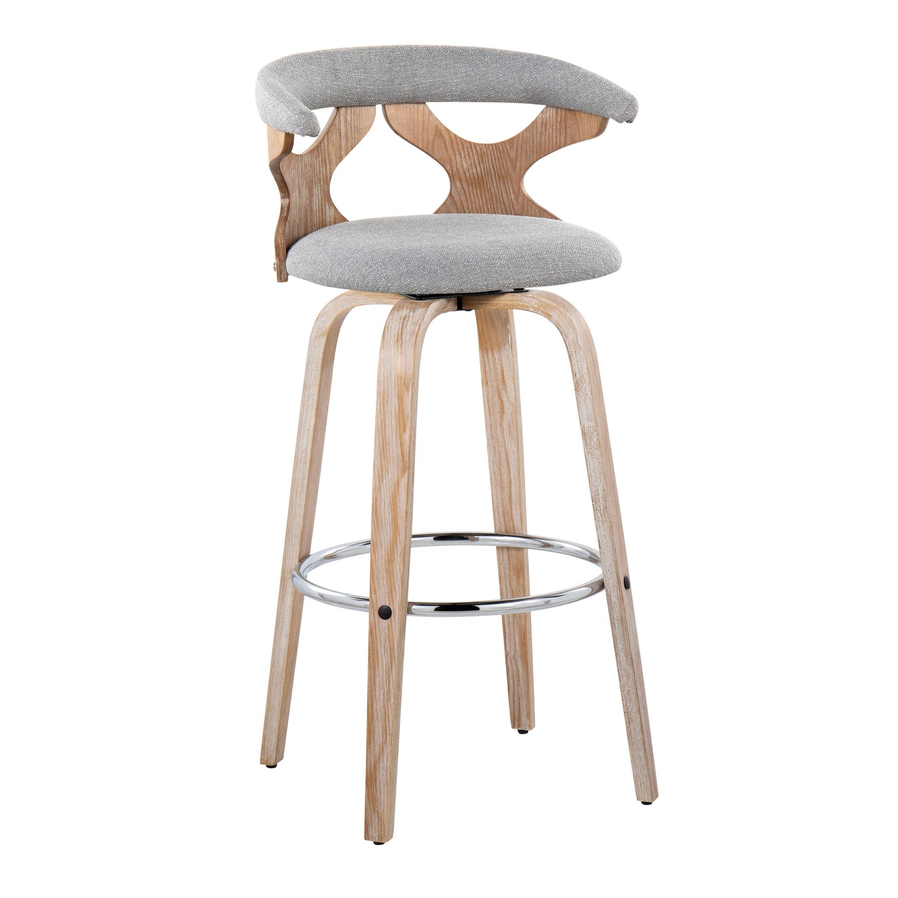 Gardenia - Contemporary Fixed Height Barstool With Swivel With Round Footrest (Set of 2) - White Washed / Gray