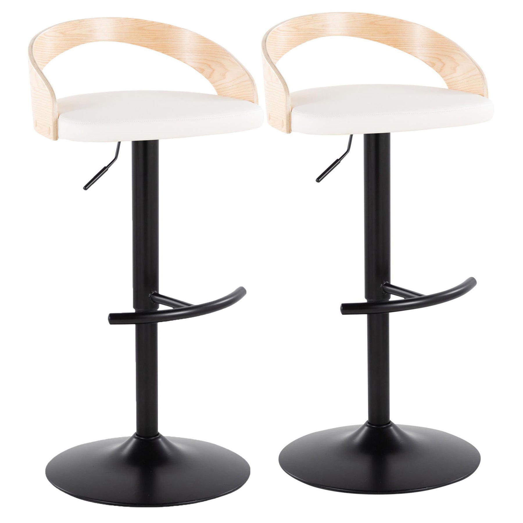 Grotto - Contemporary Adjustable Barstool With Swivel With Rounded T Footrest (Set of 2) - Black / Natural / White