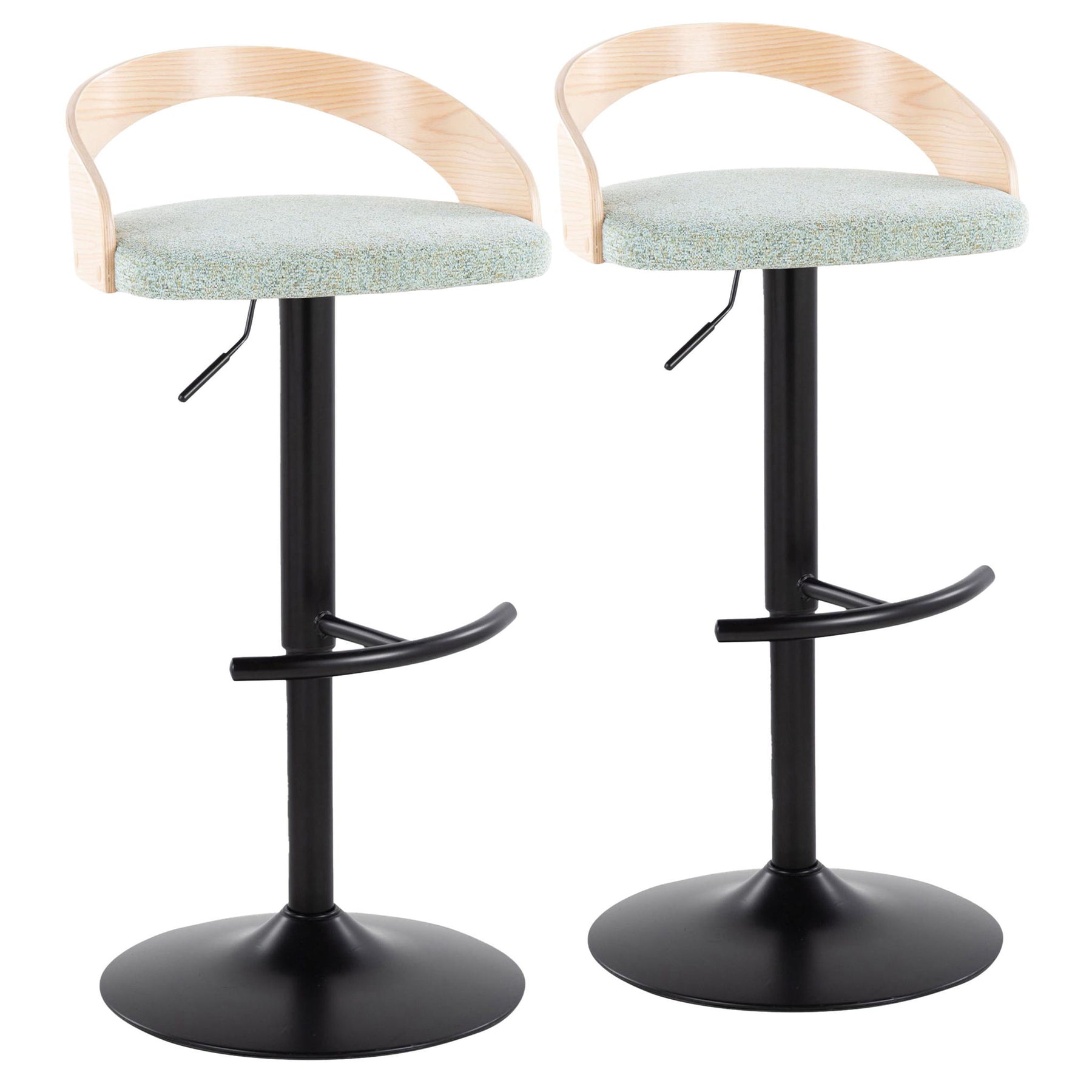 Grotto - Contemporary Adjustable Height Barstool With Swivel With Rounded T Footrest (Set of 2) - Black / Natural / Light Green