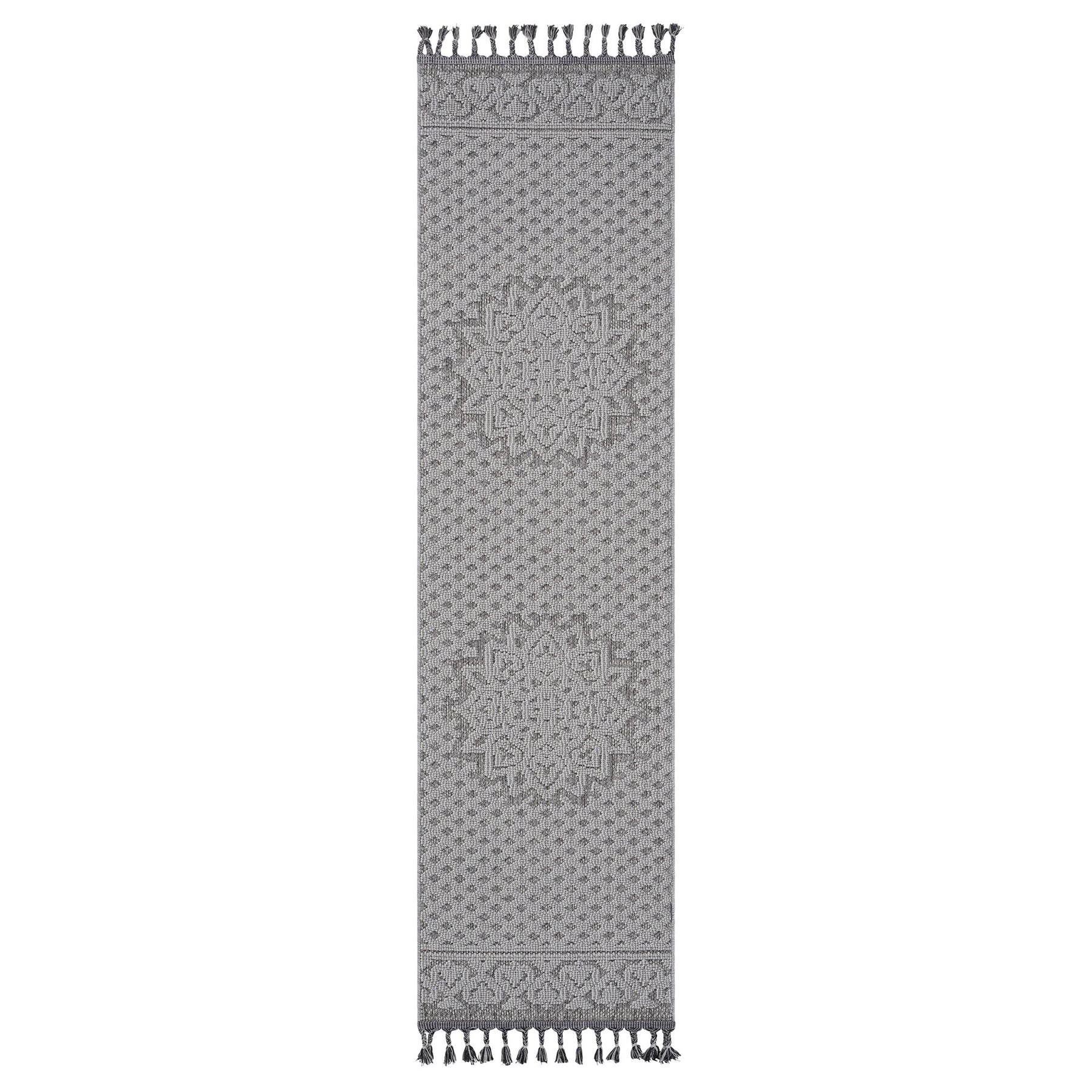 Guros - 2' X 8' Medallion Indoor / Outdoor Area Rug - Gray / White