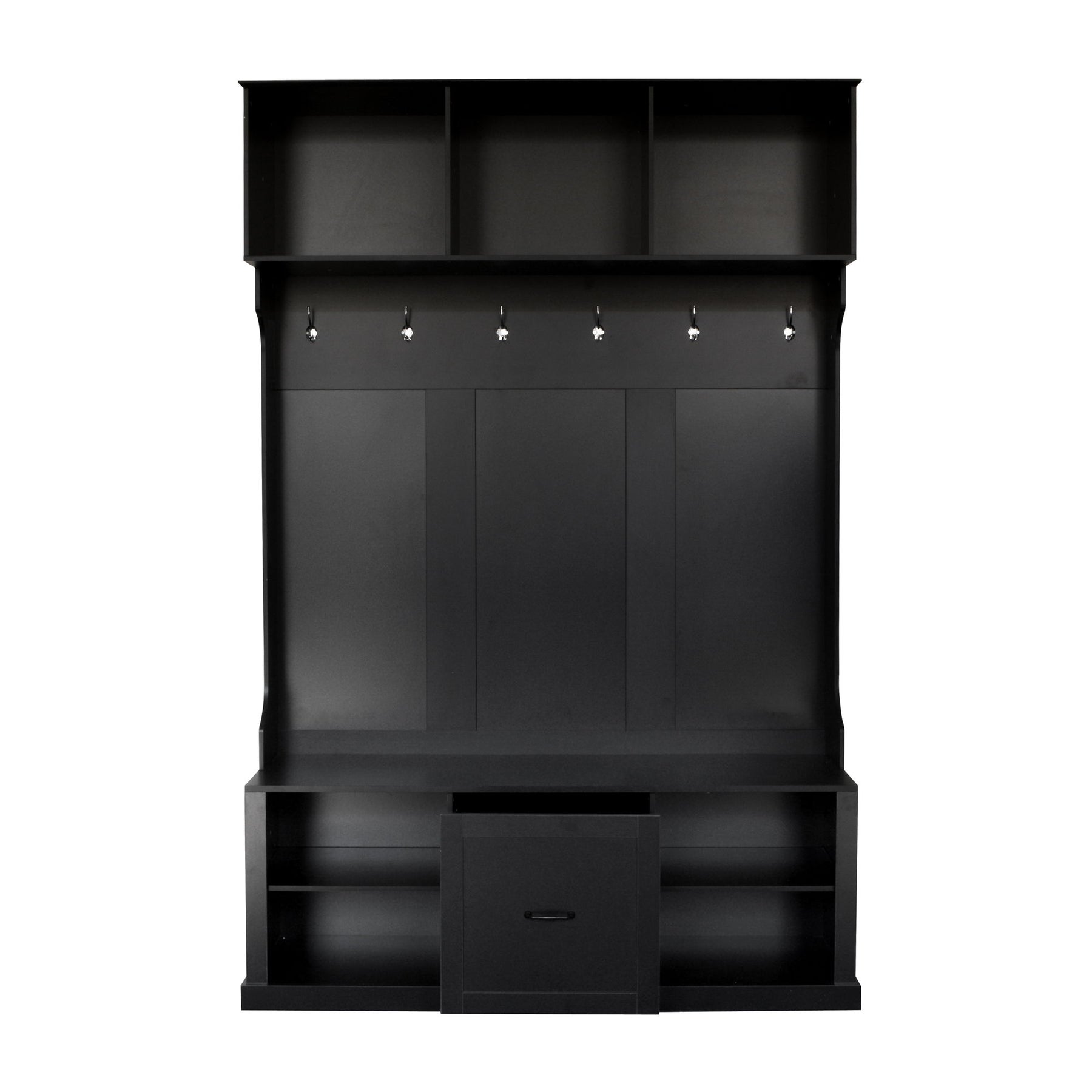 Hall Tree With 6 Hooks, Coat Hanger, Entryway Bench, 3 In 1 Design, A Spacious Drawer For Entrance, Living Room - Black