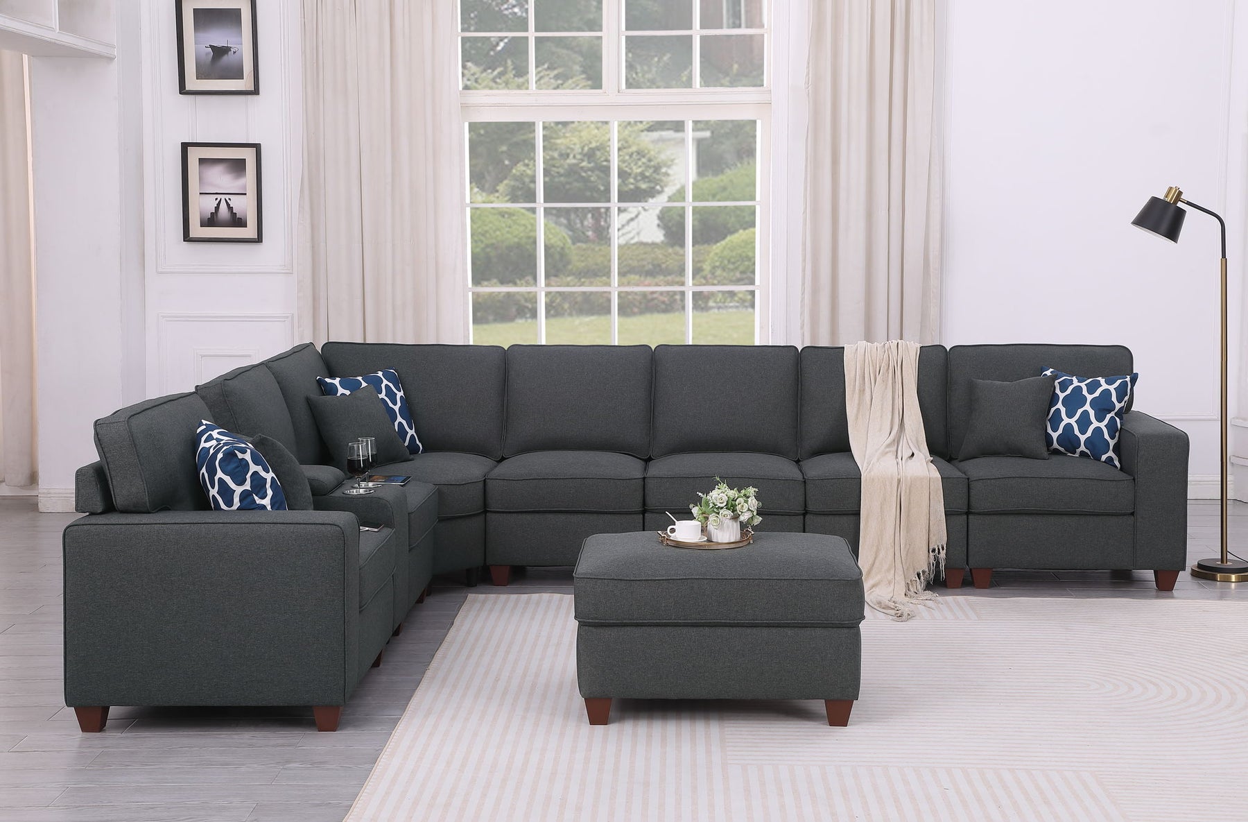 Hannah - Sectional Sofa With Ottoman - Dark Gray