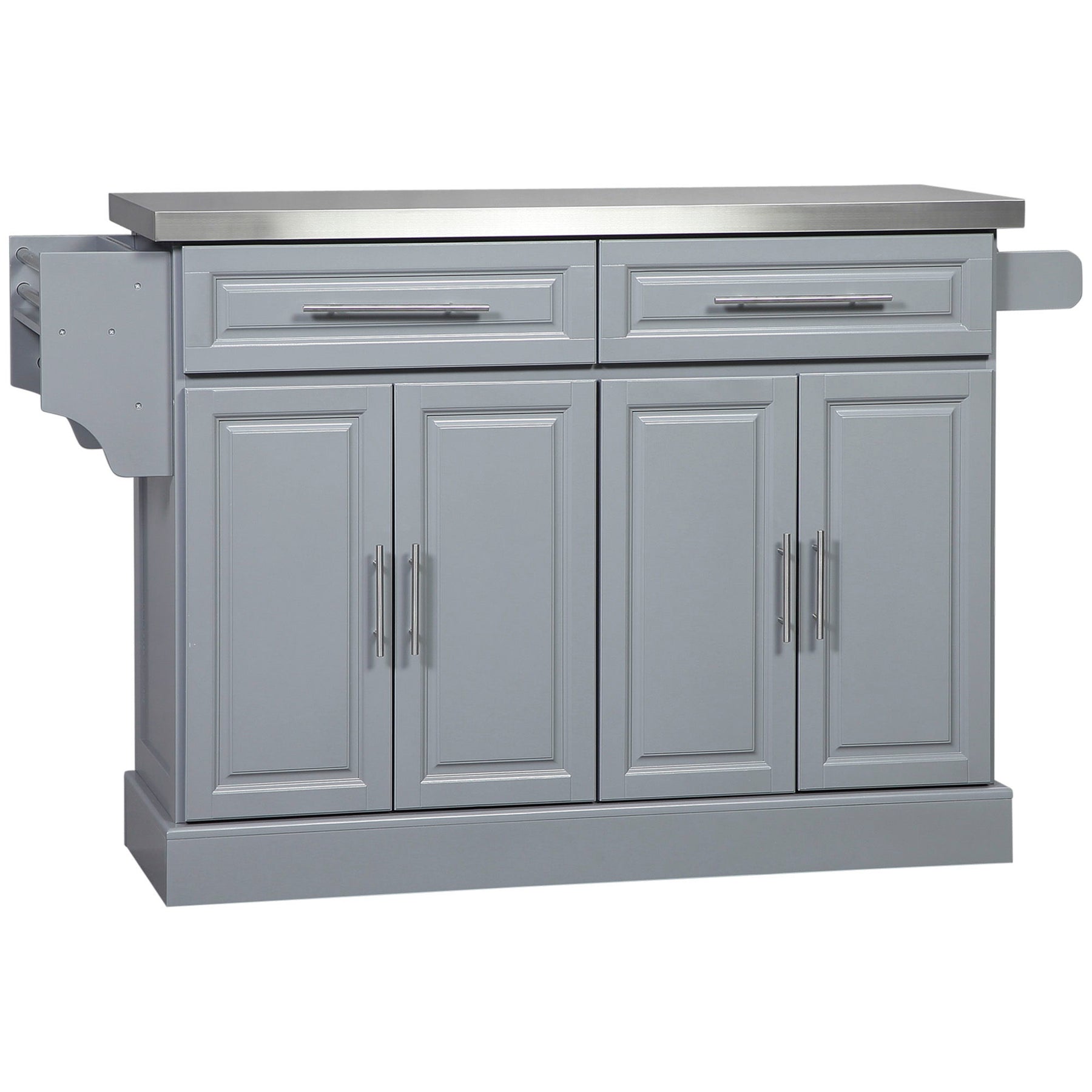 Homcom - Rolling Kitchen Island With Storage, Portable Kitchen Cart With Stainless Steel Top, 2 Drawers, Spice, Knife And Towel Rack And Cabinets - Gray