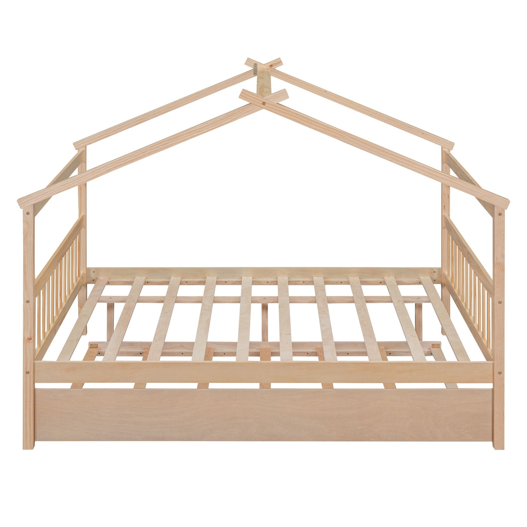 Full Size Classic House Bed With Twin Size Trundle - Natural