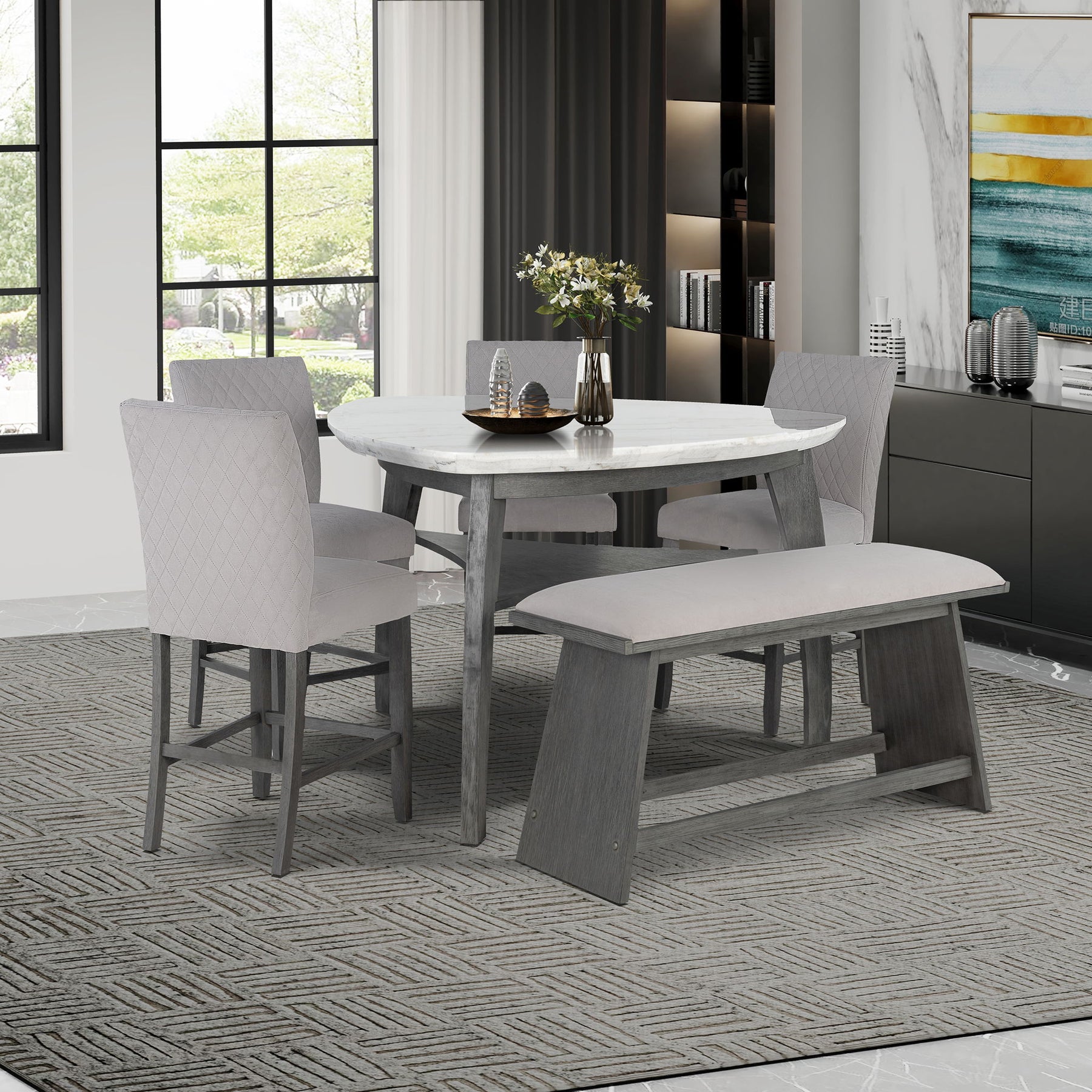 Jasmine - Bar Table With Arched Legs And Marble Top, Triangular Shape - Gray
