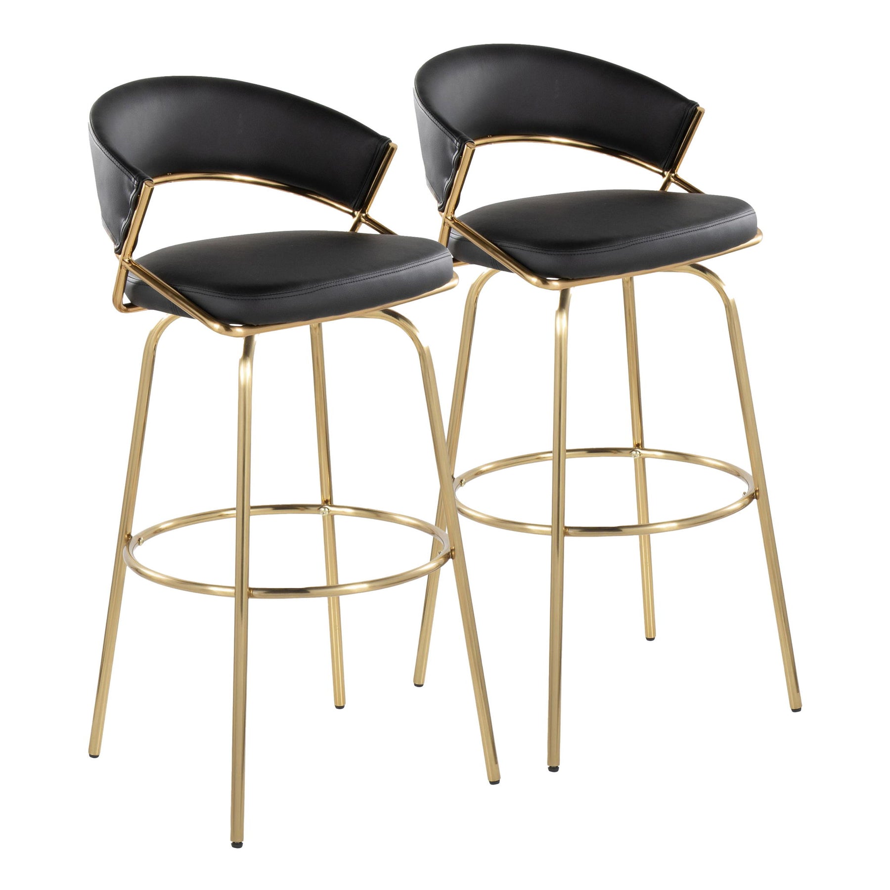 Jie - Fixed Height Contemporary Barstool With Swivel With Round Footrest (Set of 2) - Gold / Black