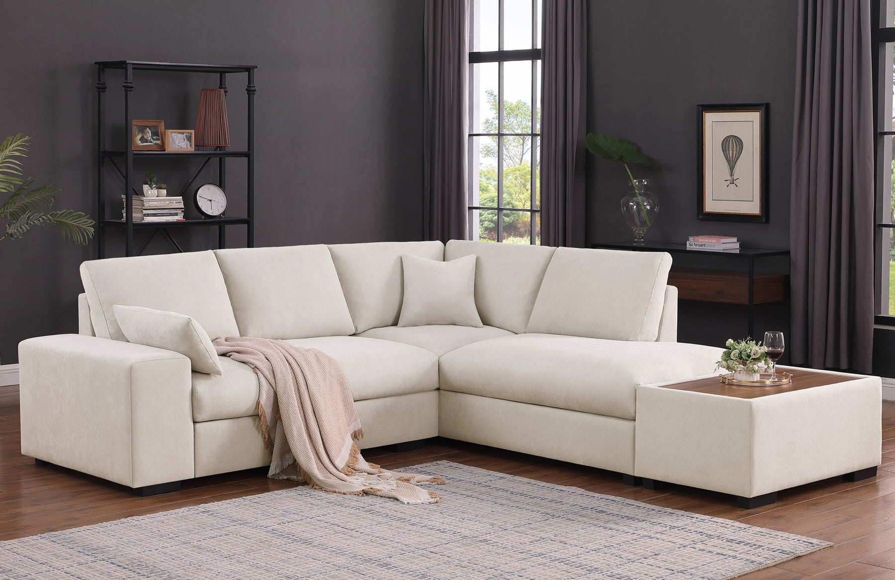 Joshua - Woven Fabric Sectional Sofa With Right Facing Chaise and Console Ottoman - Beige
