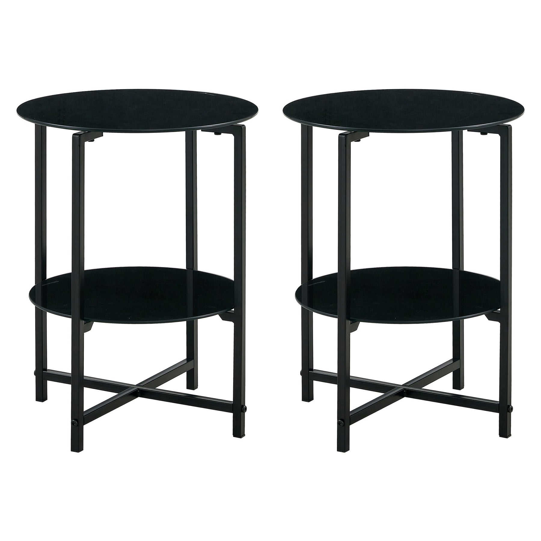 Tempered Glass End Table (Set of 2), Round Coffee Table For Bedroom Living Room Office - Black