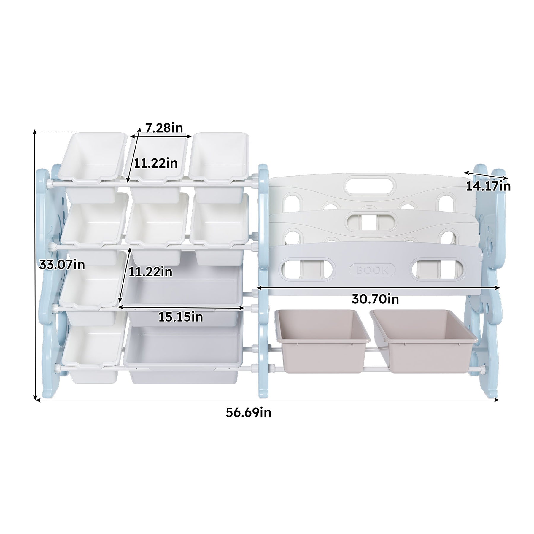 • Multi-functional: Stores toys and books, providing a designated place for various items.