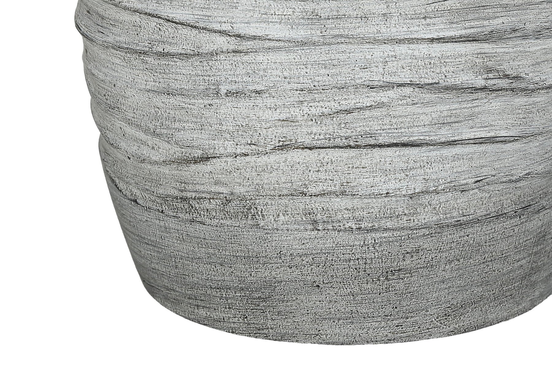 - Modern Design: Vase-like shape with textured grey resin body, flowing lines, and an ivory linen drum shade, topped with a black round finial.