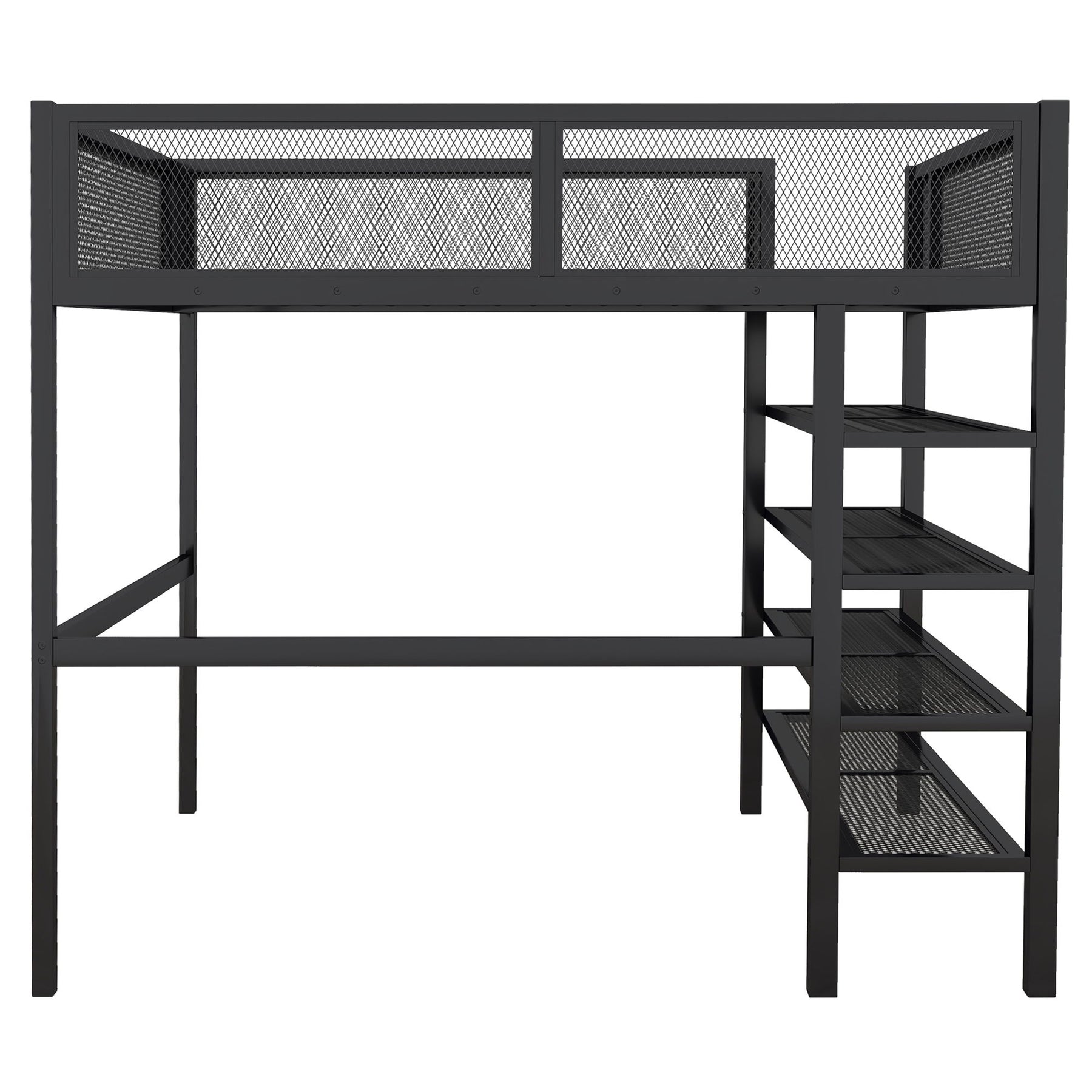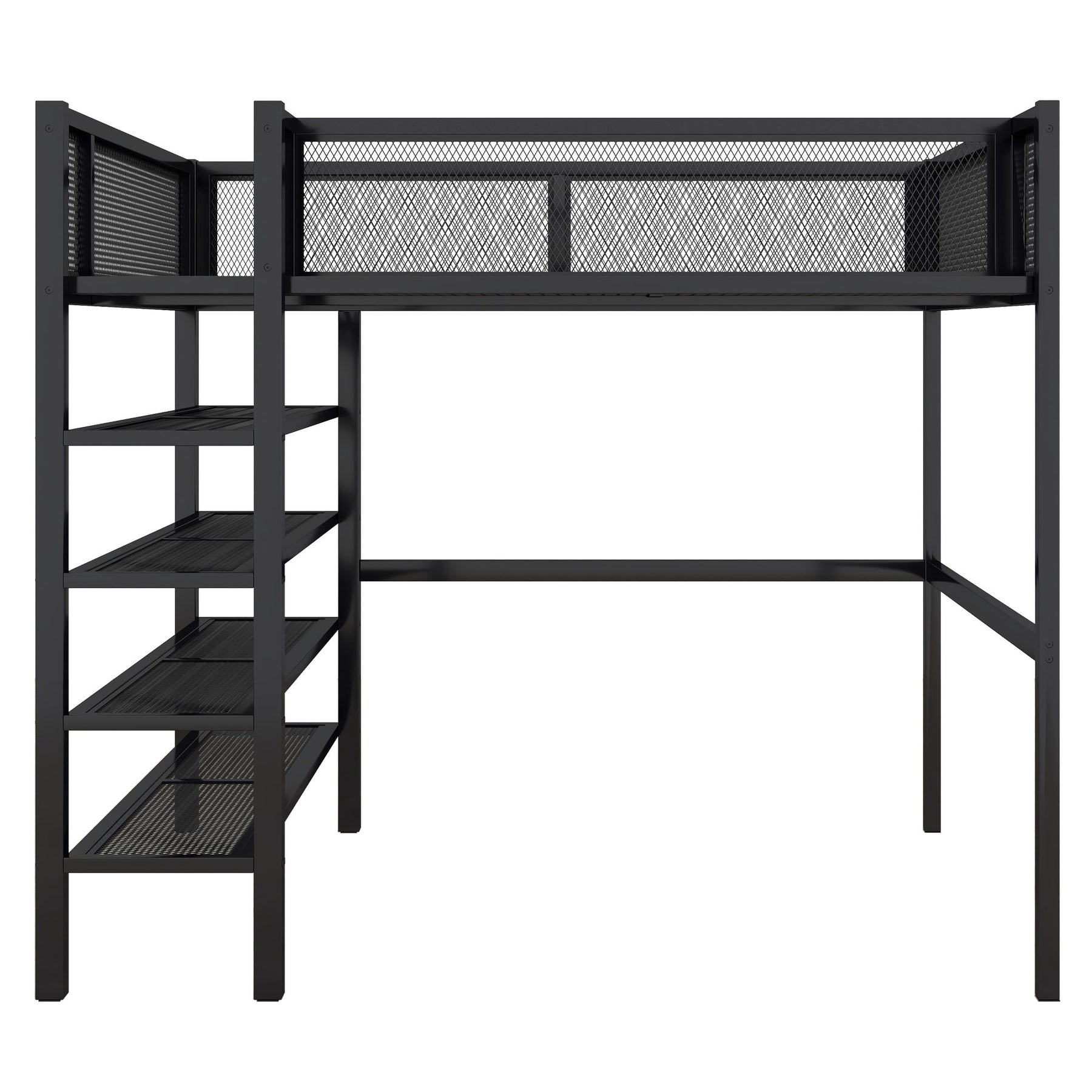 Full Size Loft Bed With 4 Tier Shelves And Storage - Black