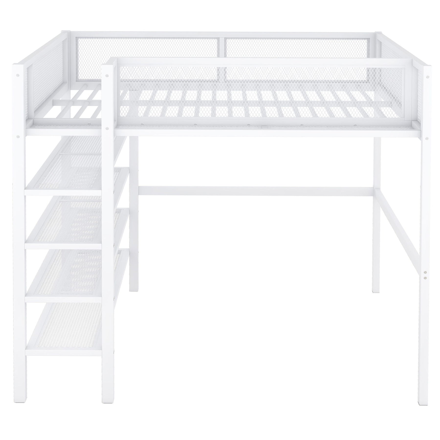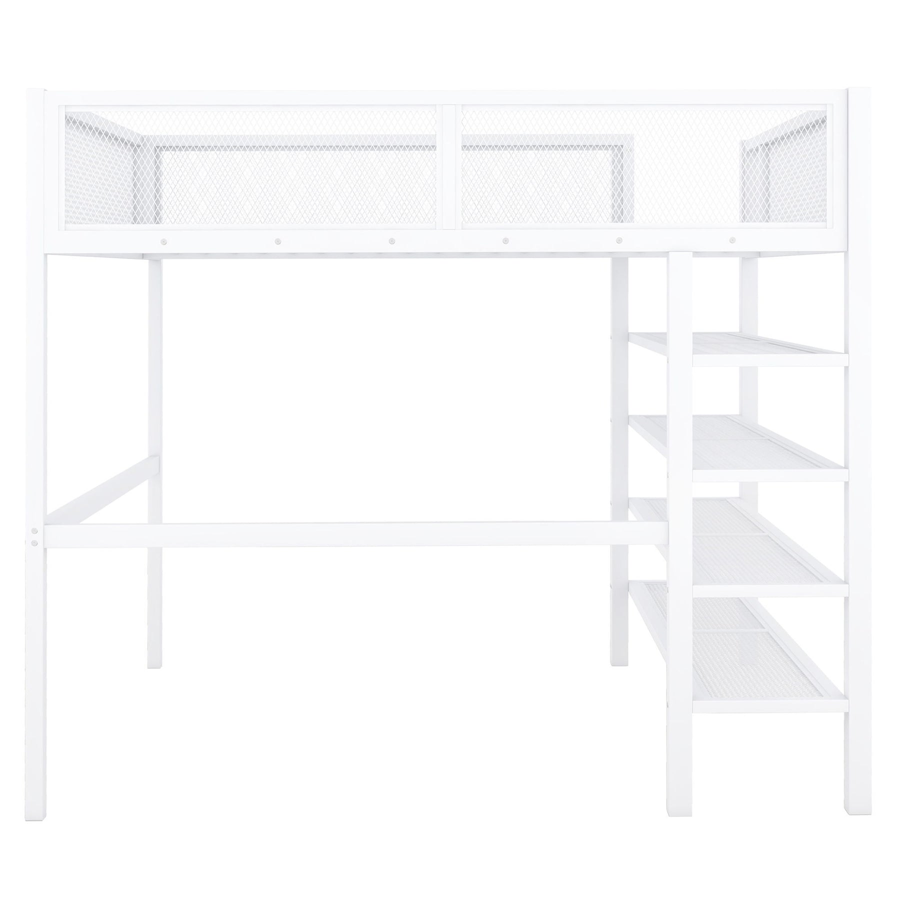 Full Size Loft Bed With 4 Tier Shelves And Storage - White