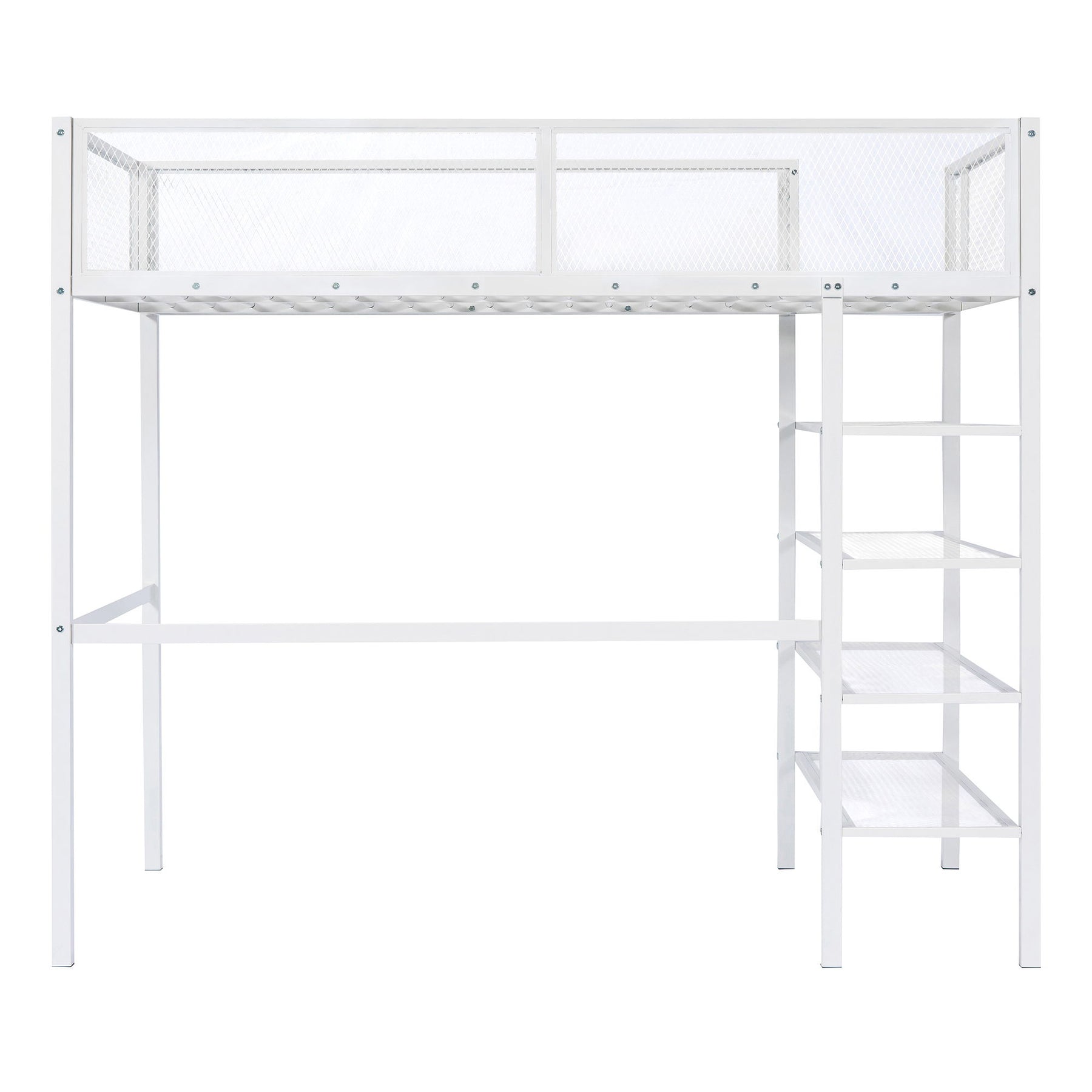 Twin Size Loft Bed With 4 Tier Shelves And Storage - White