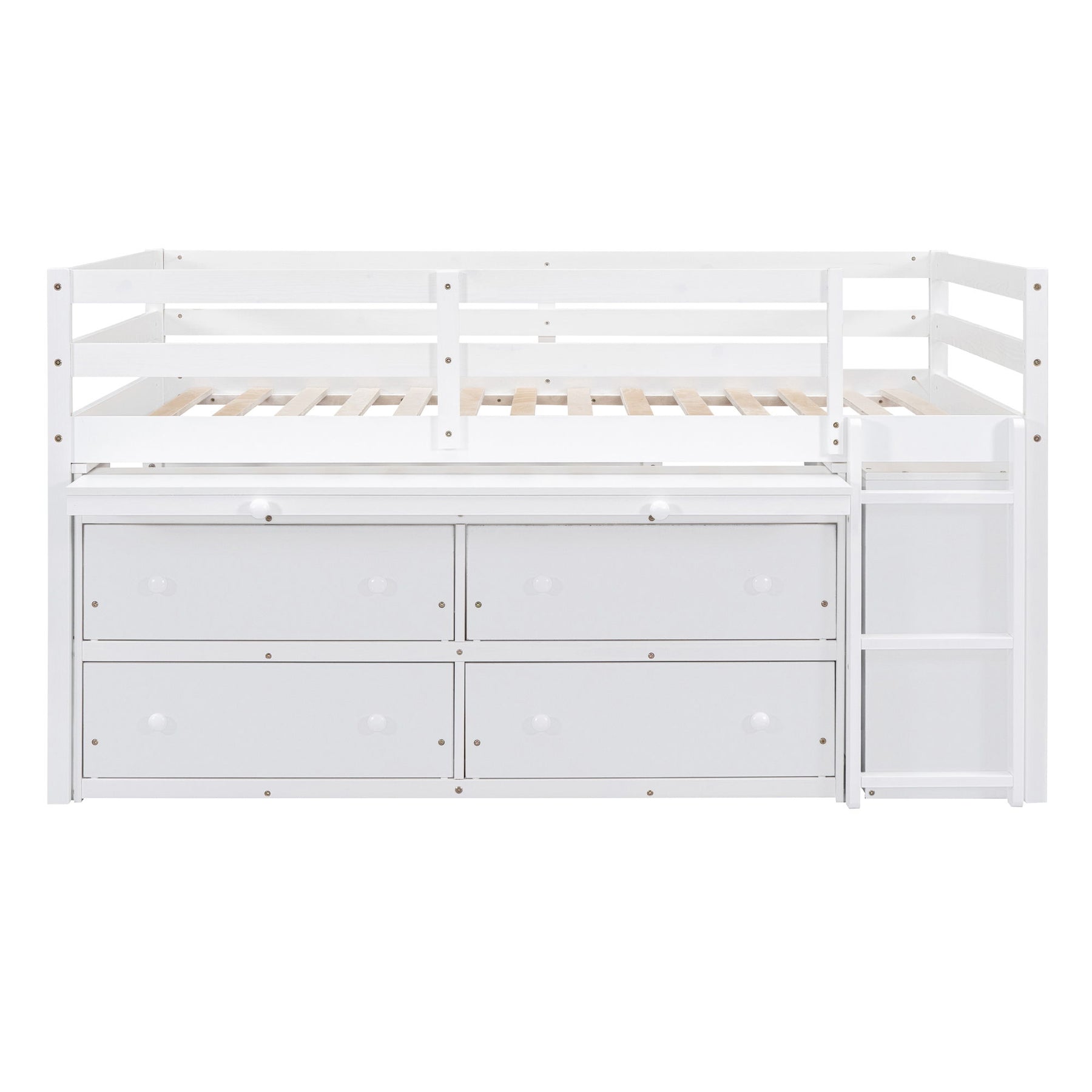 Solid Construction: Crafted from a sturdy pine wood frame and commercial-grade MDF board, this multi-functional loft bed ensures durability and safety. Guardrails are securely attached for added protection.